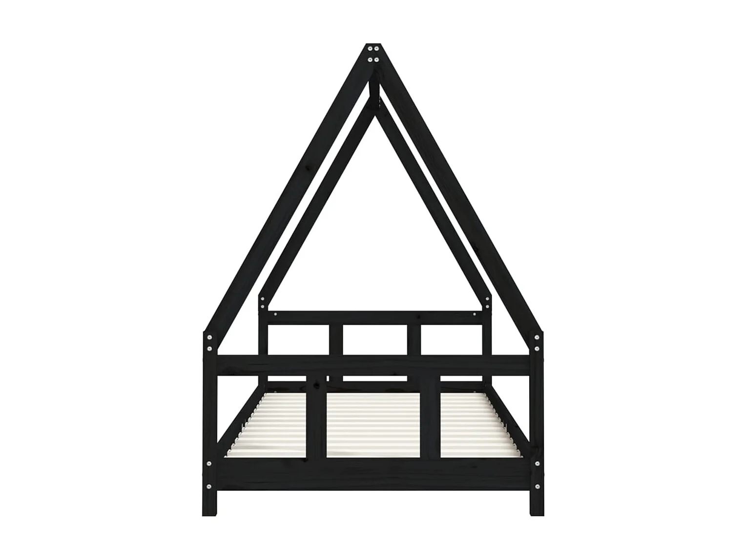 Cadre de lit pour enfants noir 90x200 bois de pin massif