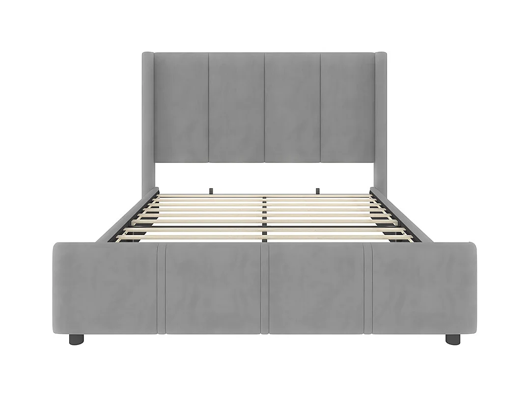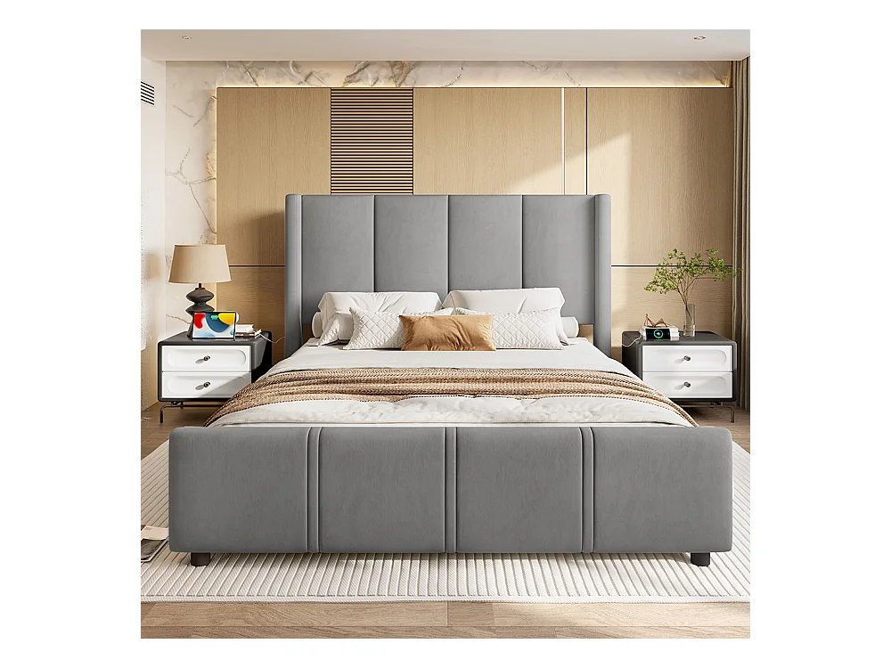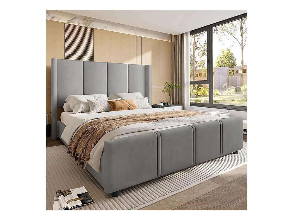 Cadre de lit rembourré 160x200 cm tête et pied de lit hauts port USB fer et bois gris