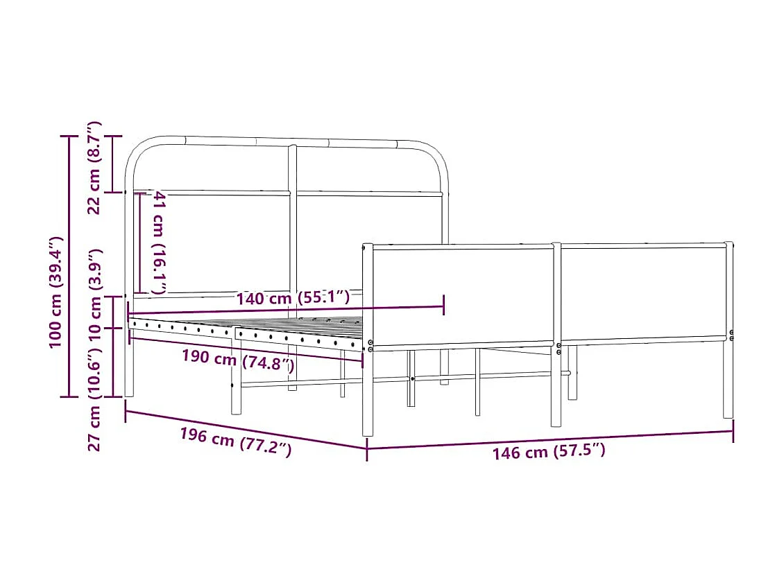 Cadre de lit sans matelas avec tête de lit 140x190 cm