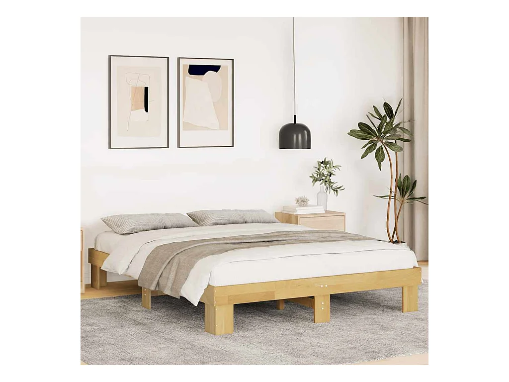 Cadre de lit sans matelas 160x200 cm bois massif de chêne
