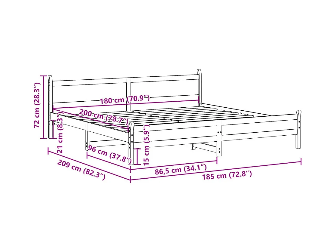Cadre de lit sans matelas 180x200 cm bois massif de pin