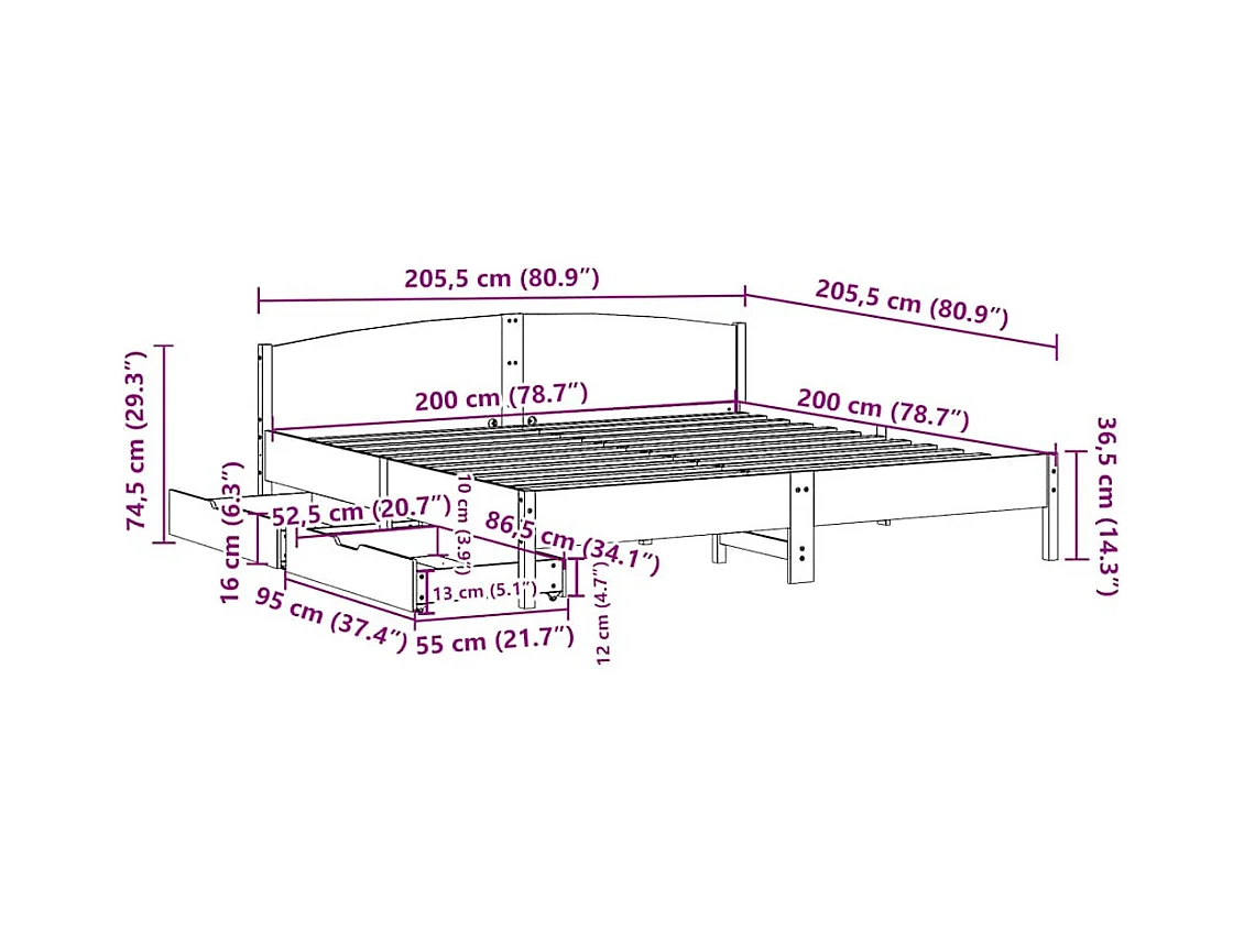 Cadre de lit sans matelas 200x200 cm bois massif de pin
