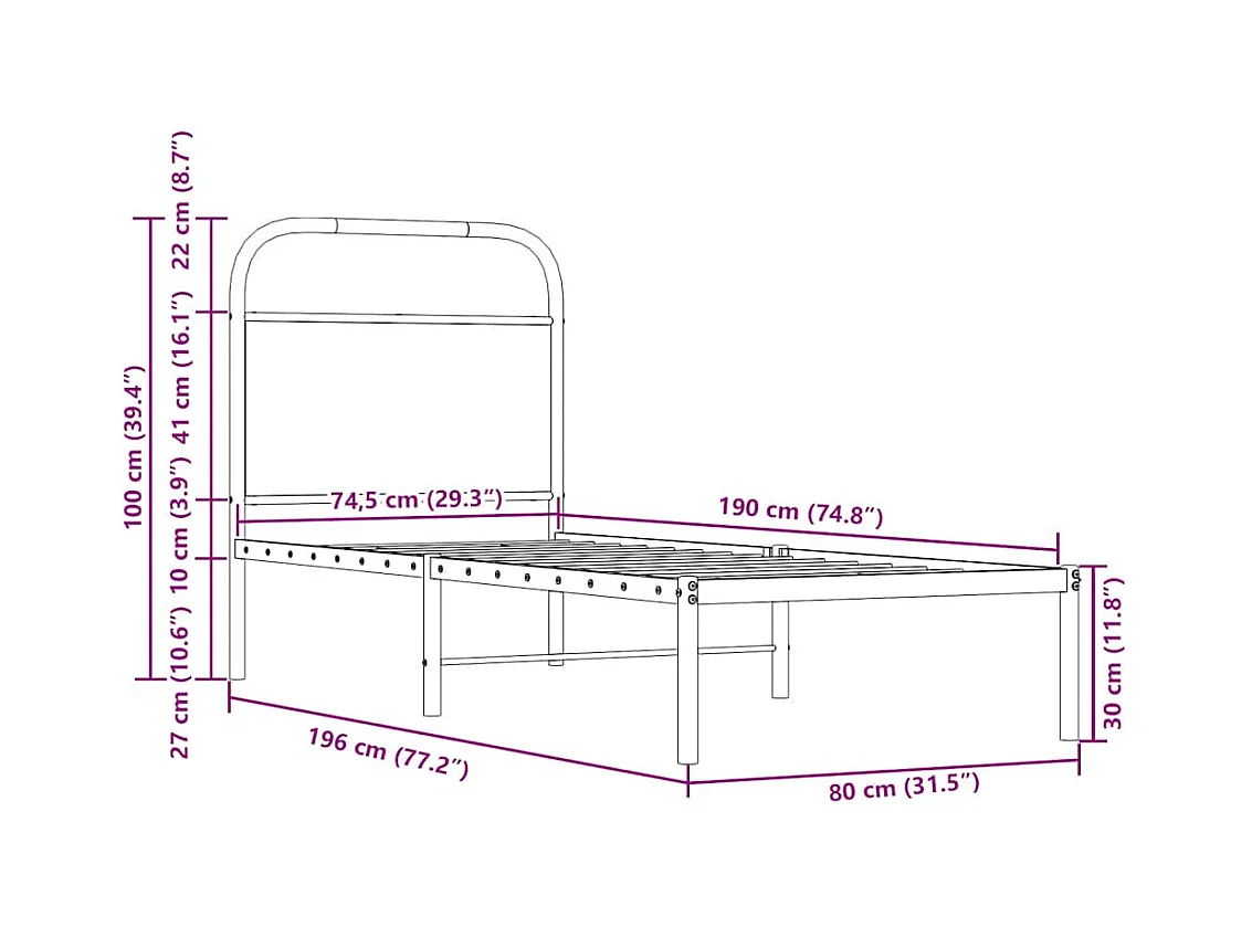 Cadre de lit sans matelas 75x190cm chêne marron bois ingénierie