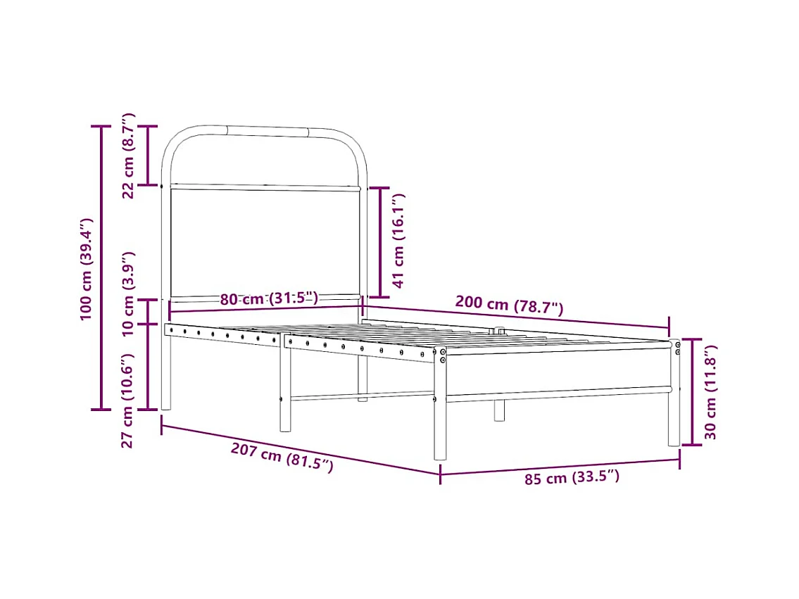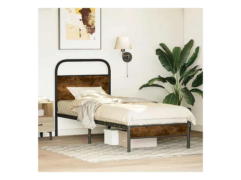 Cadre de lit sans matelas 80x200cm chêne fumé bois d'ingénierie
