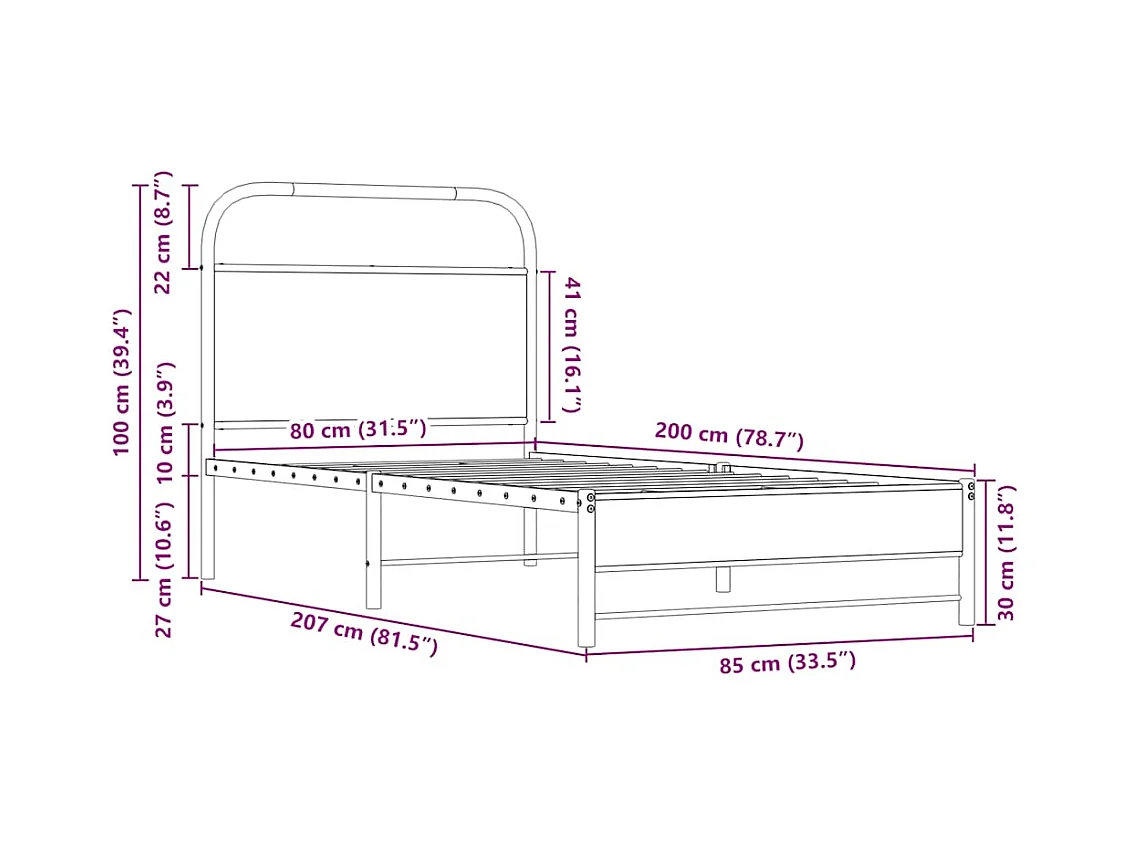 Cadre de lit sans matelas 80x200cm chêne fumé bois d'ingénierie