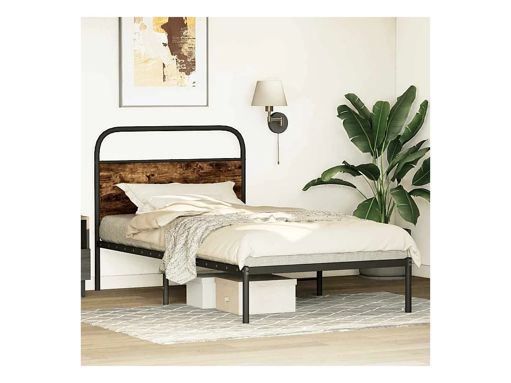 Cadre de lit sans matelas chêne fumé 90x190cm bois d'ingénierie