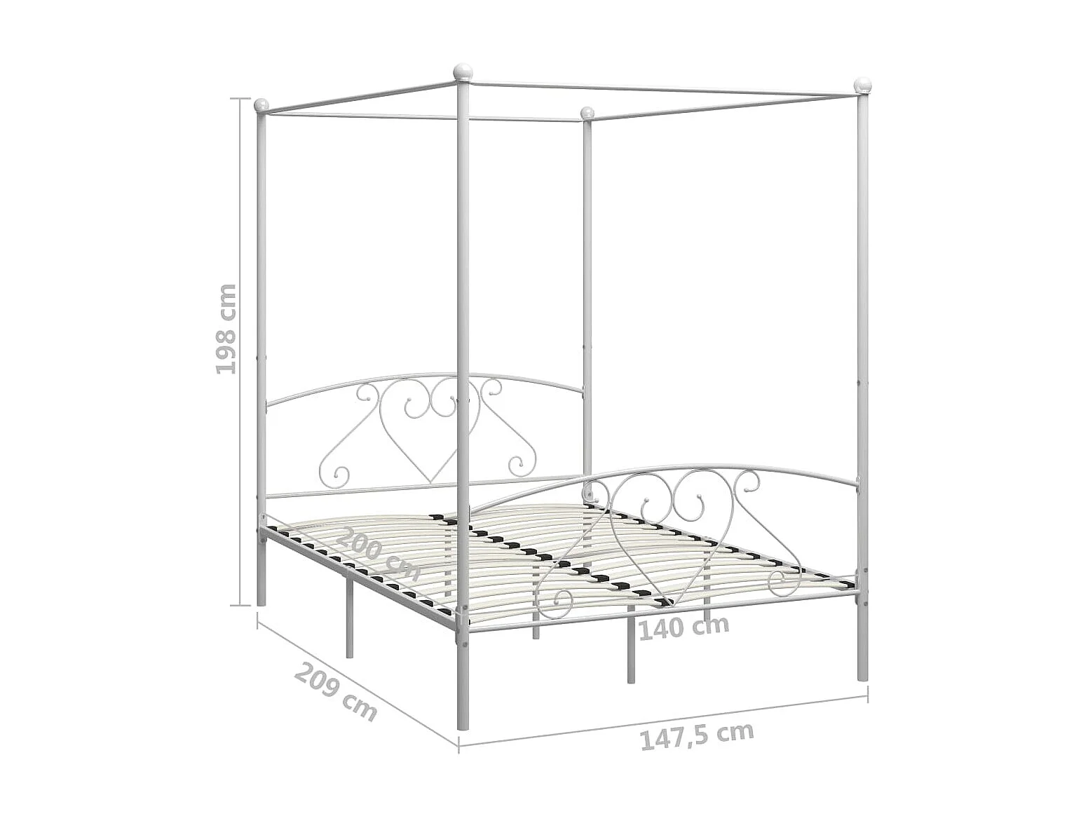 Cadre de lit sans matelas avec baldaquin blanc 140x200 cm métal