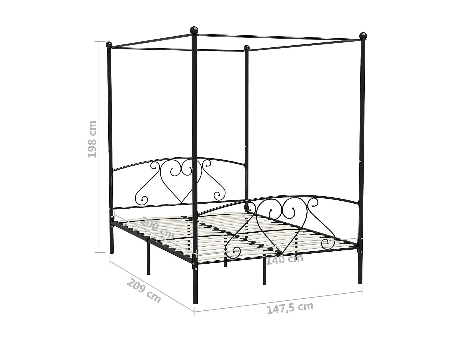Cadre de lit sans matelas avec baldaquin noir 140x200 cm métal