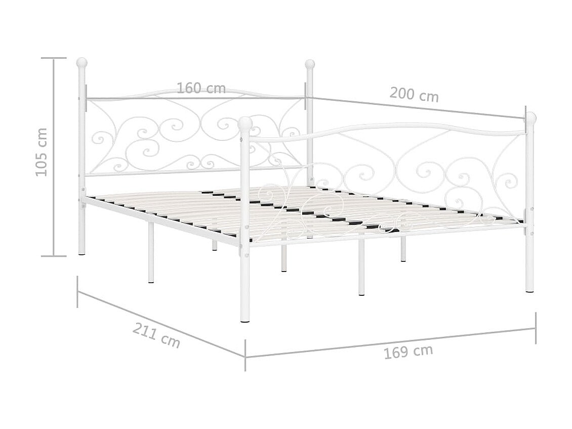 Cadre de lit sans matelas avec sommier à lattes métal 160x200cm