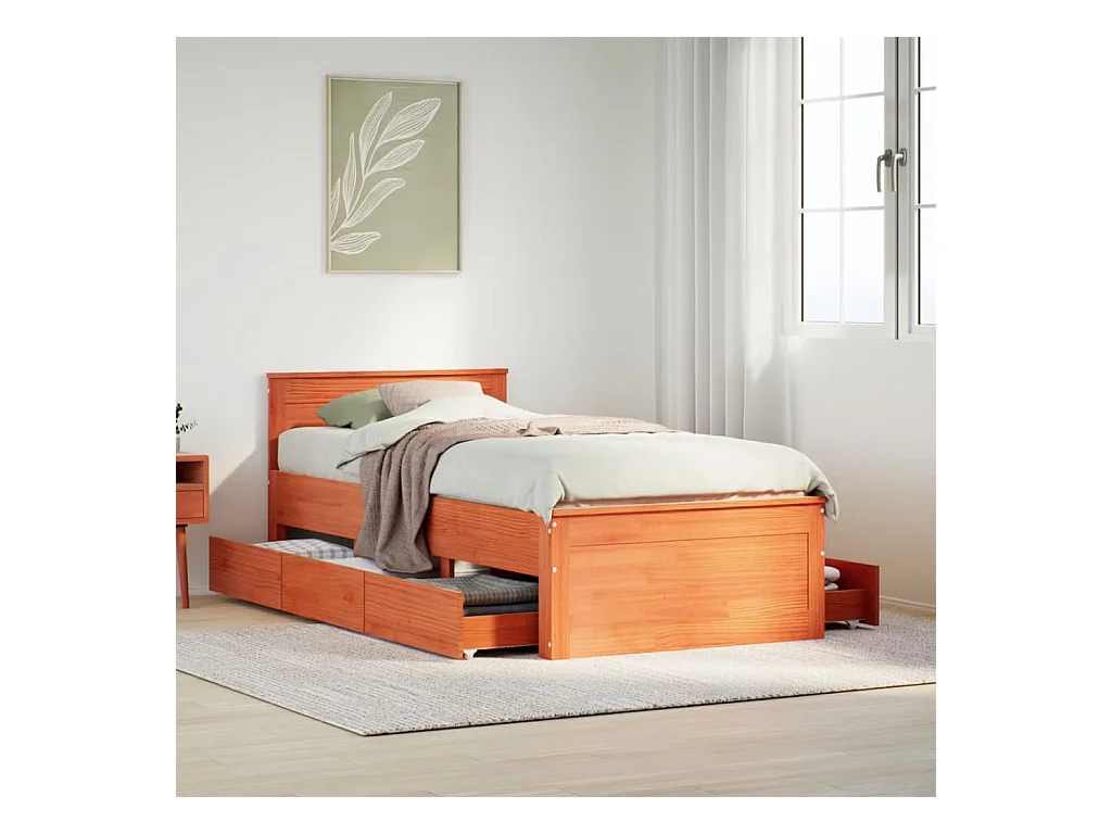 Cadre de lit sans matelas avec tête de lit 100x200 cm bois pin