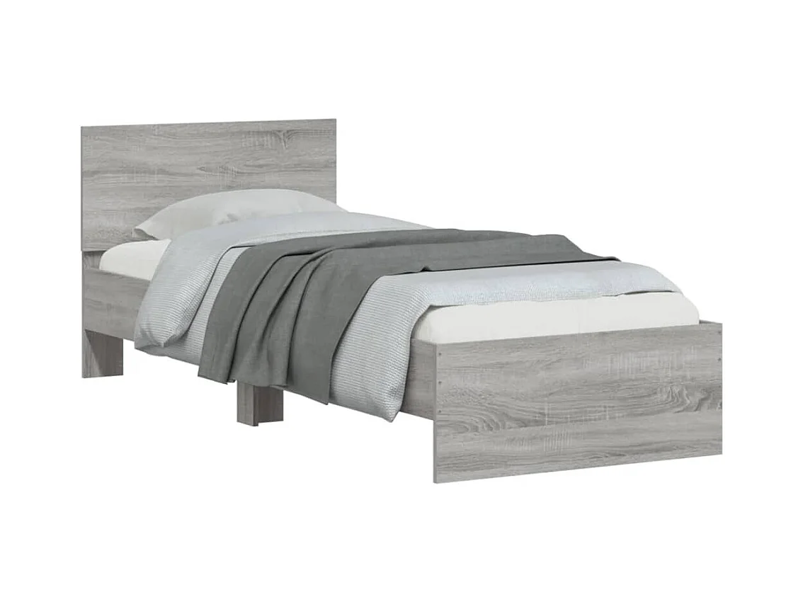 Lit simple + tête de lit gris 90x200 cm bois de pin massif FR31452