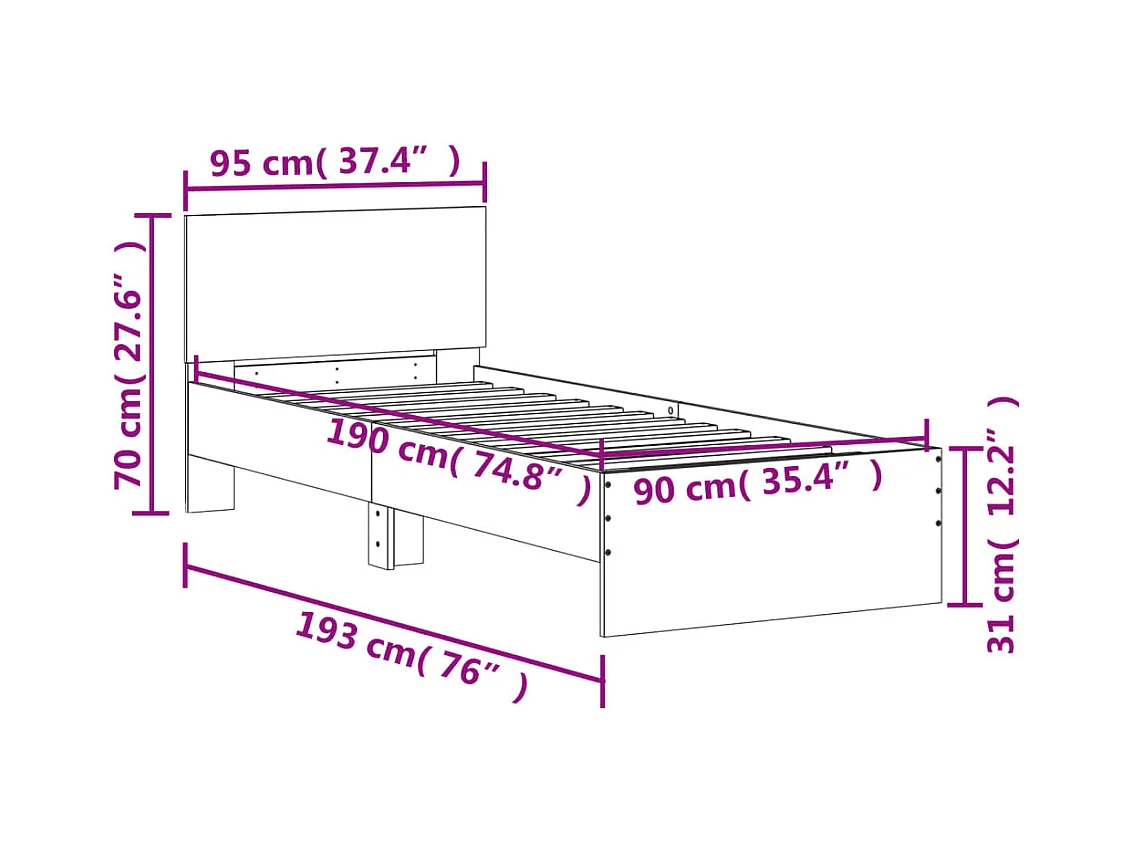 Cadre de lit sans matelas avec tête de lit 90x190 cm