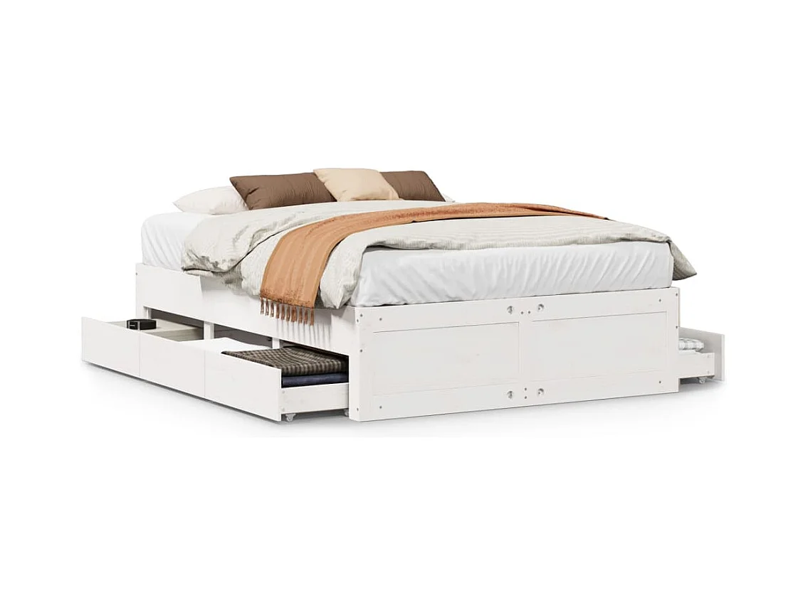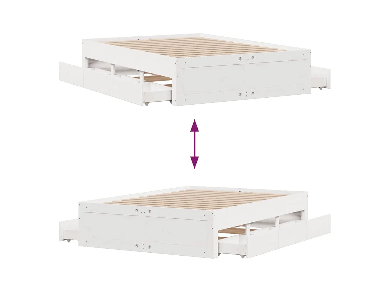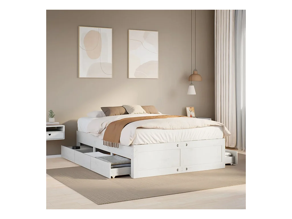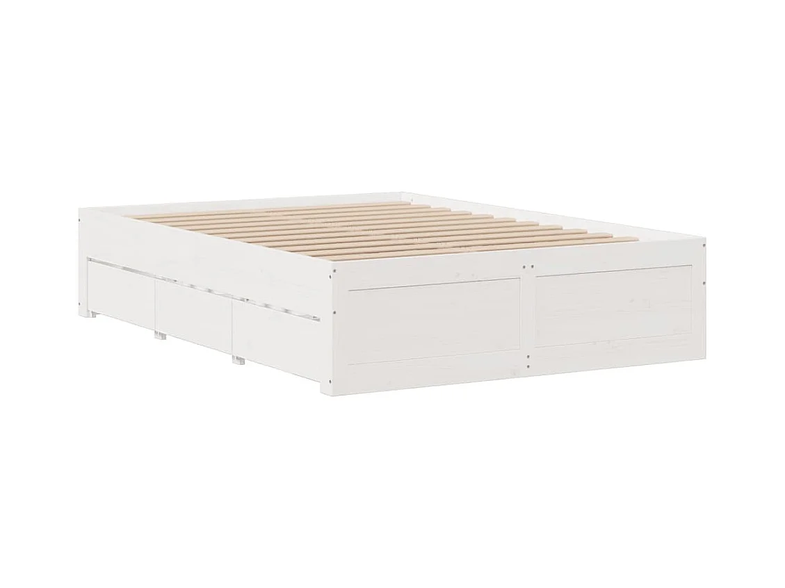 Cadre de lit sans matelas avec tiroirs 140x190 cm bois de pin