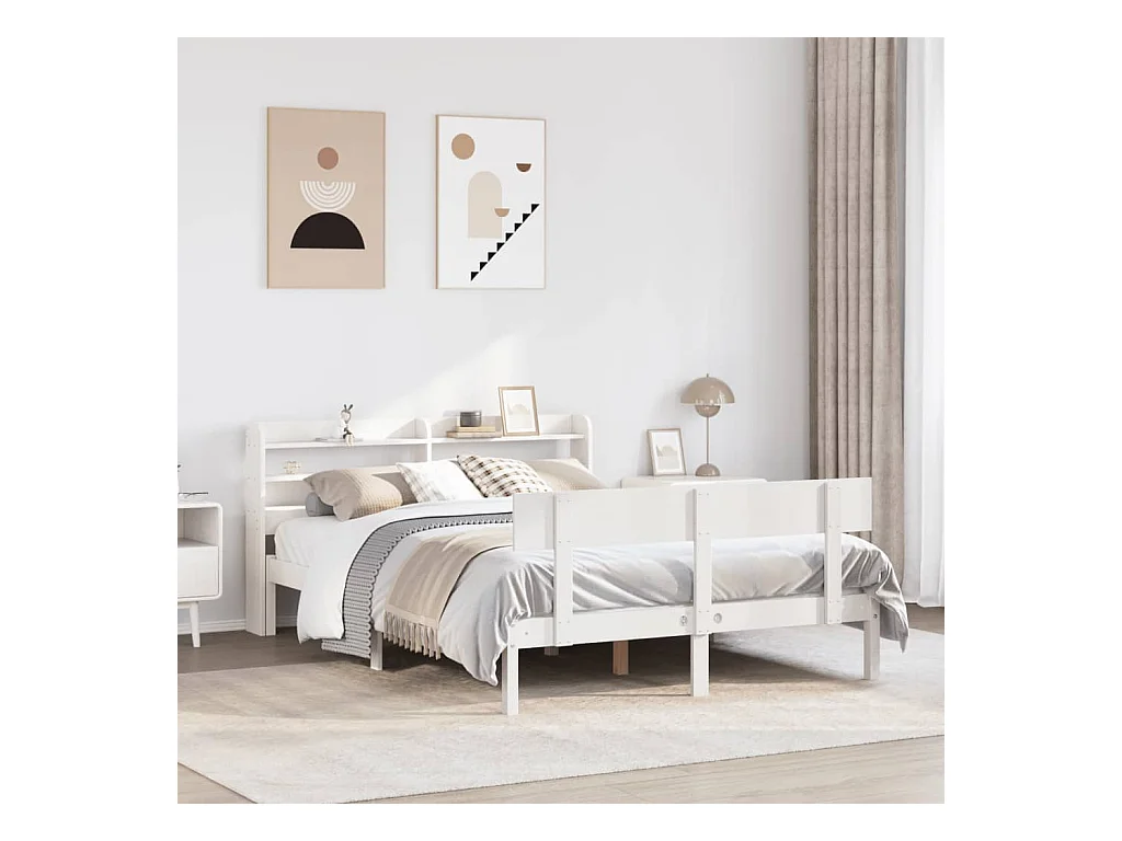Cadre de lit sans matelas blanc 135x190 cm bois de pin massif