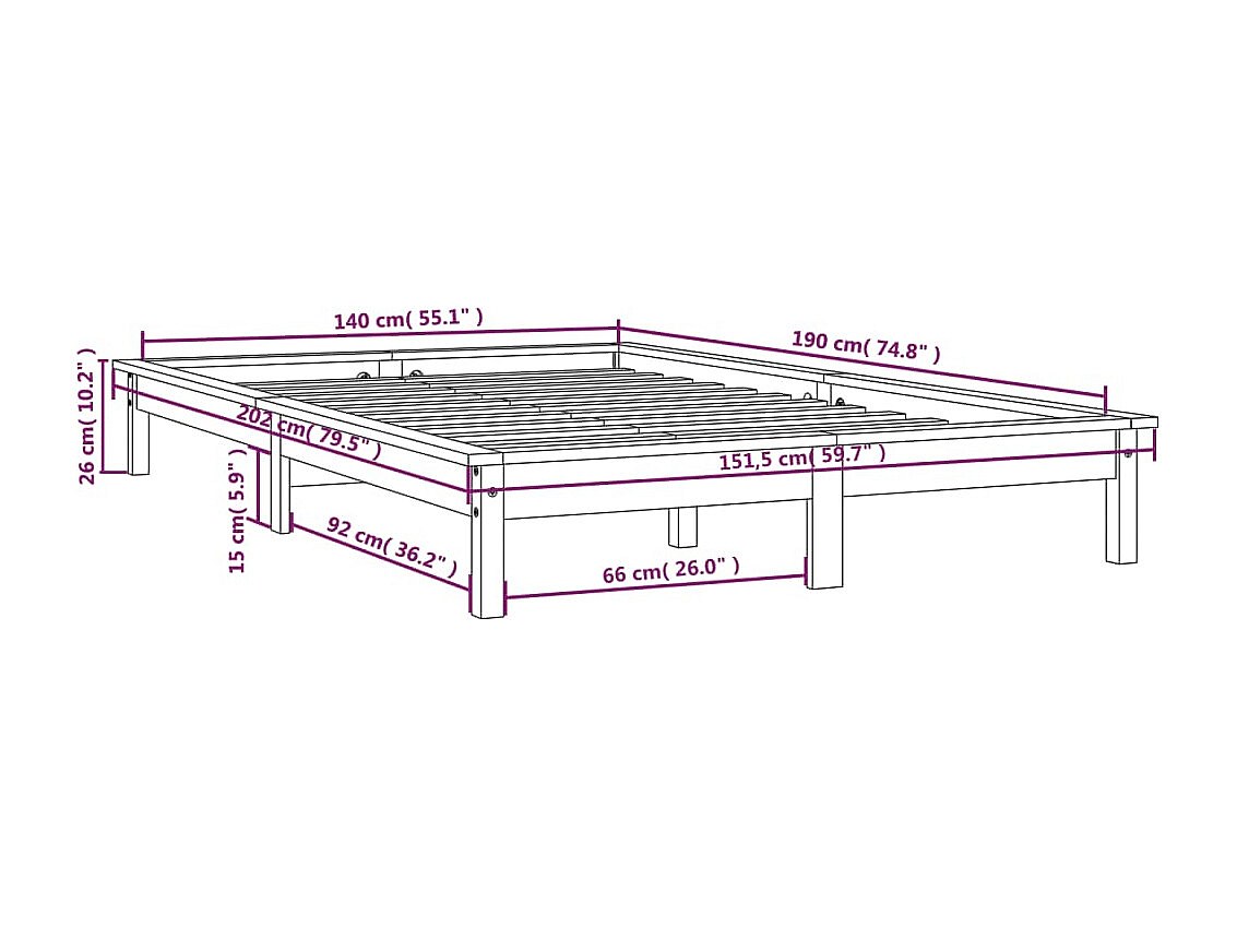 Cadre de lit sans matelas blanc 140x190 cm bois de pin massif