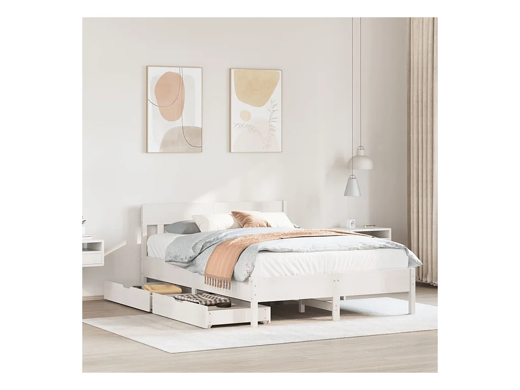 Cadre de lit sans matelas blanc 140x190 cm bois de pin massif