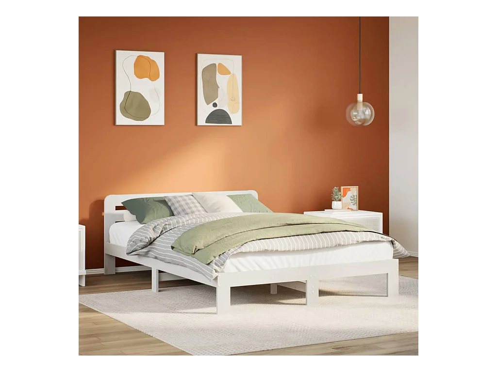 Cadre de lit sans matelas blanc 150x200 cm bois de pin massif
