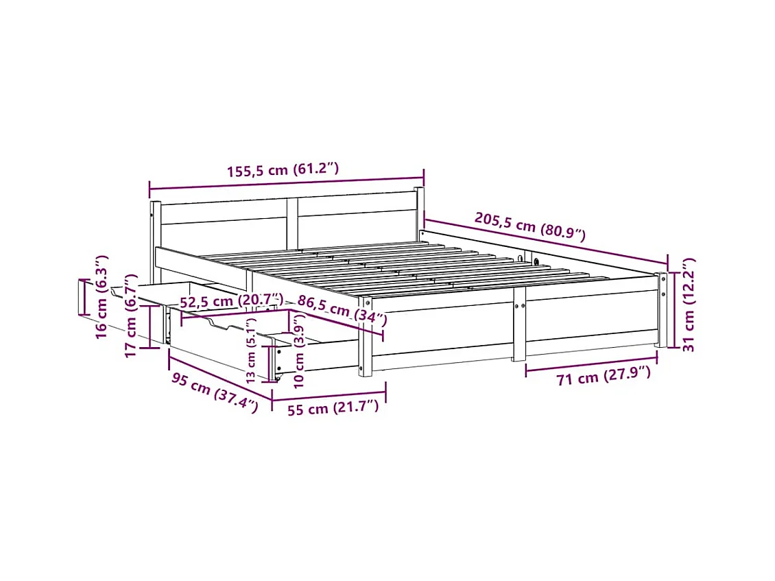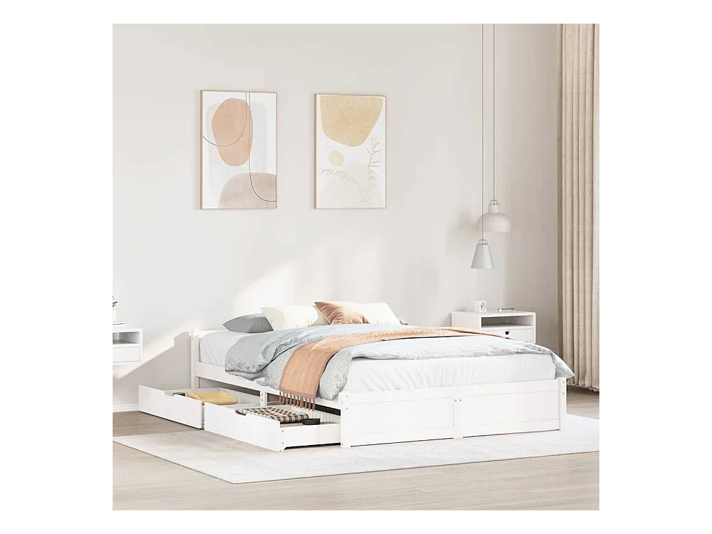 Cadre de lit sans matelas blanc 150x200 cm bois de pin massif