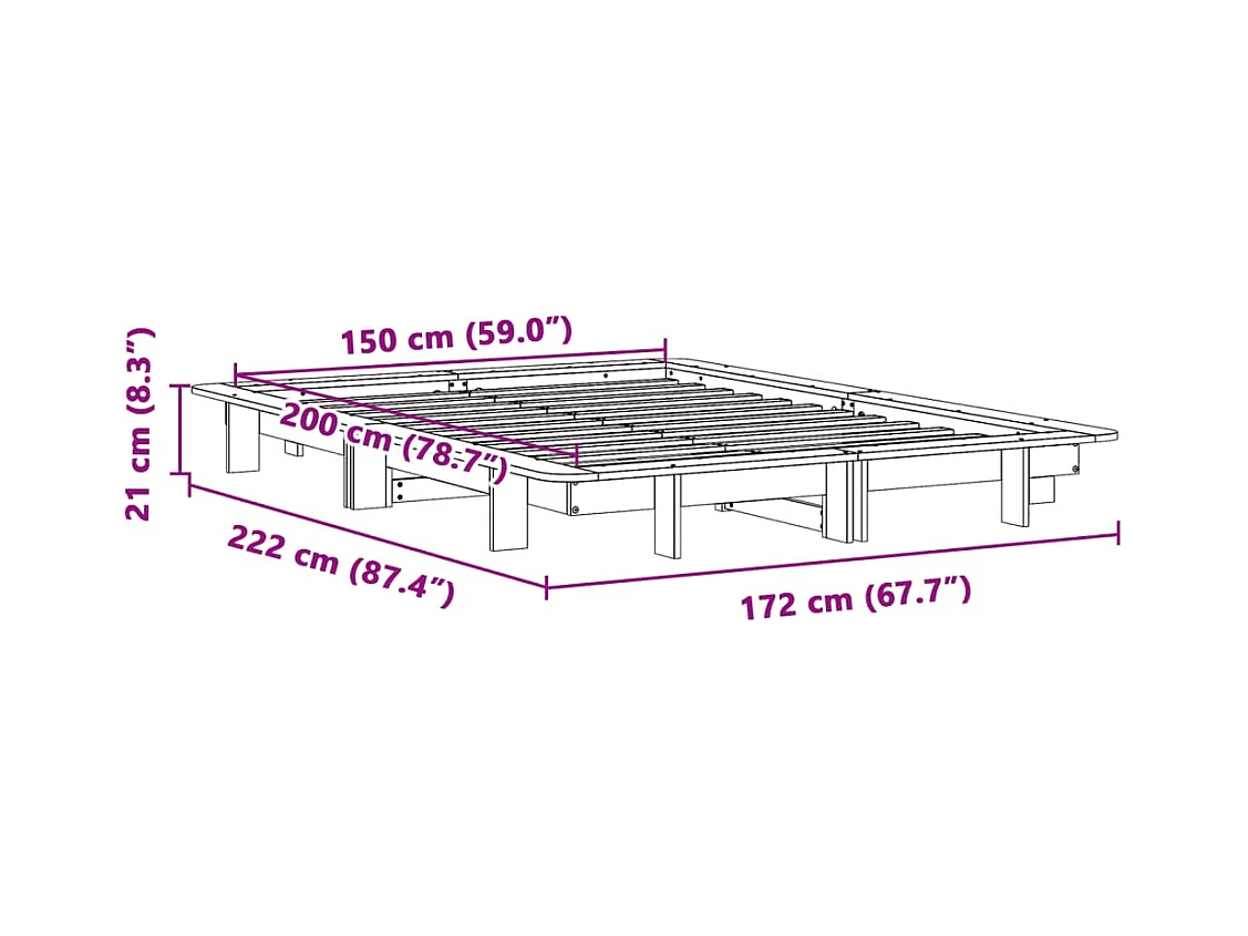 Cadre de lit sans matelas blanc 150x200 cm bois de pin massif