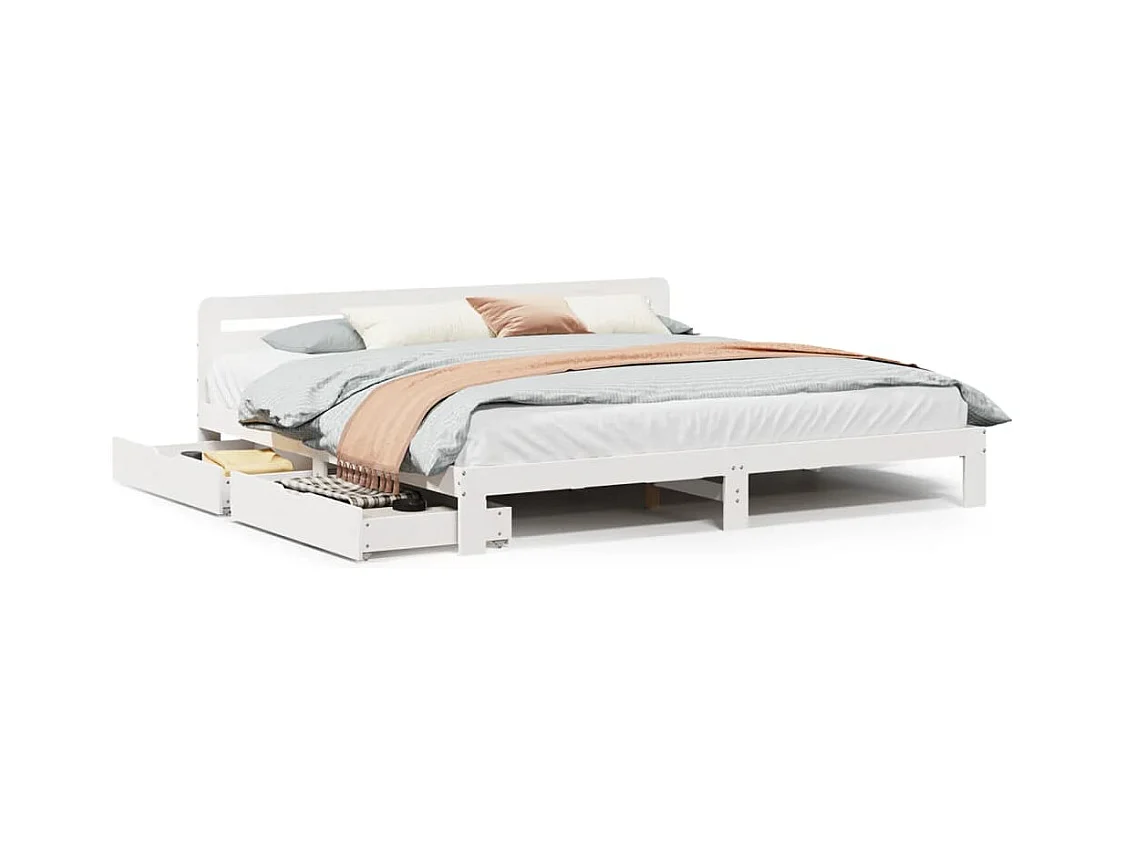Cadre de lit sans matelas blanc 180x200 cm bois massif de pin