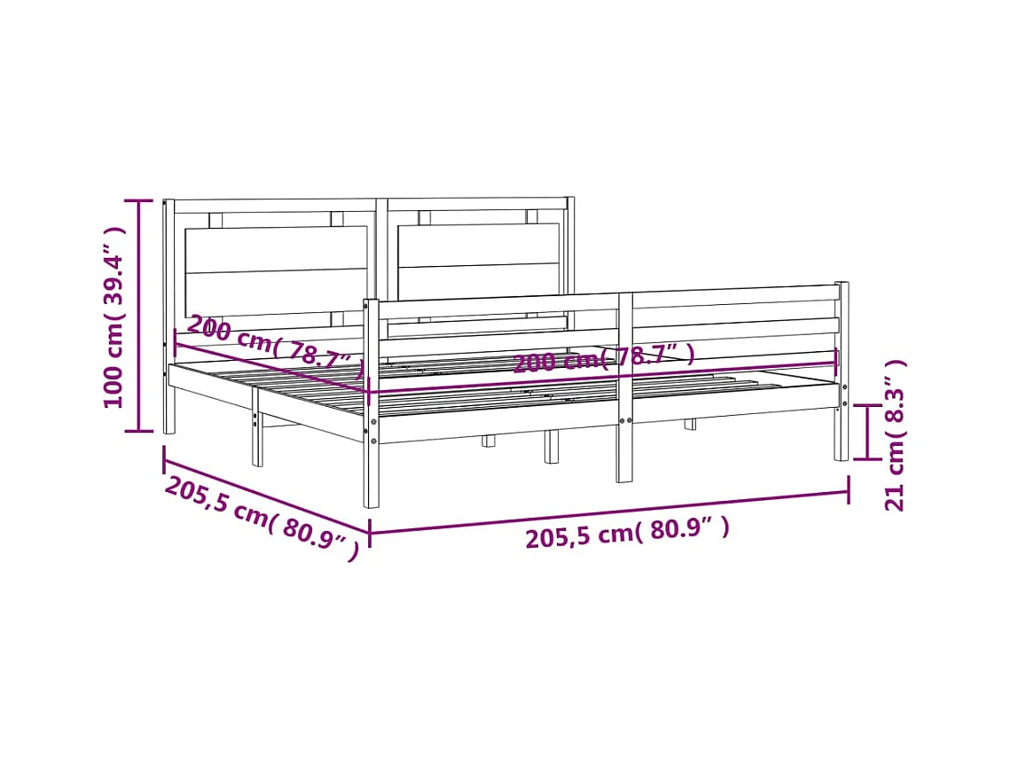 Cadre de lit sans matelas blanc 200x200 cm bois massif