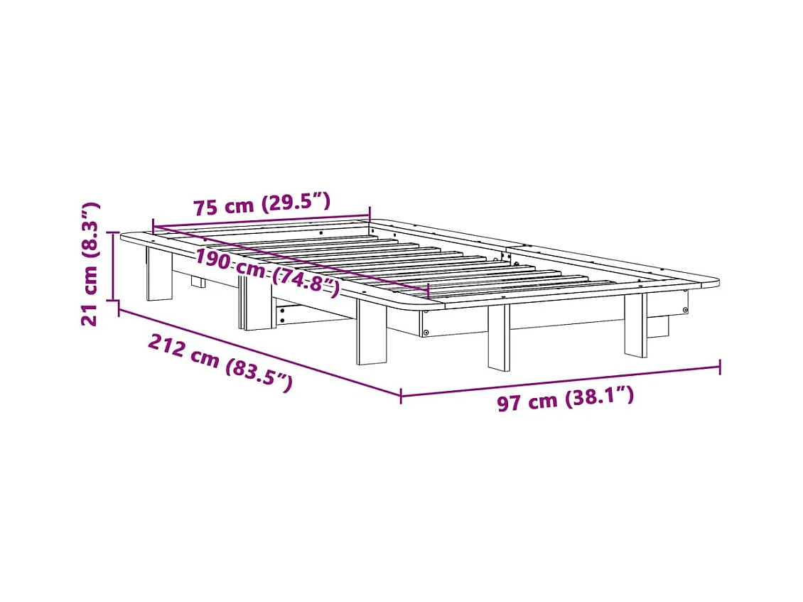 Cadre de lit sans matelas blanc 75x190 cm bois de pin massif