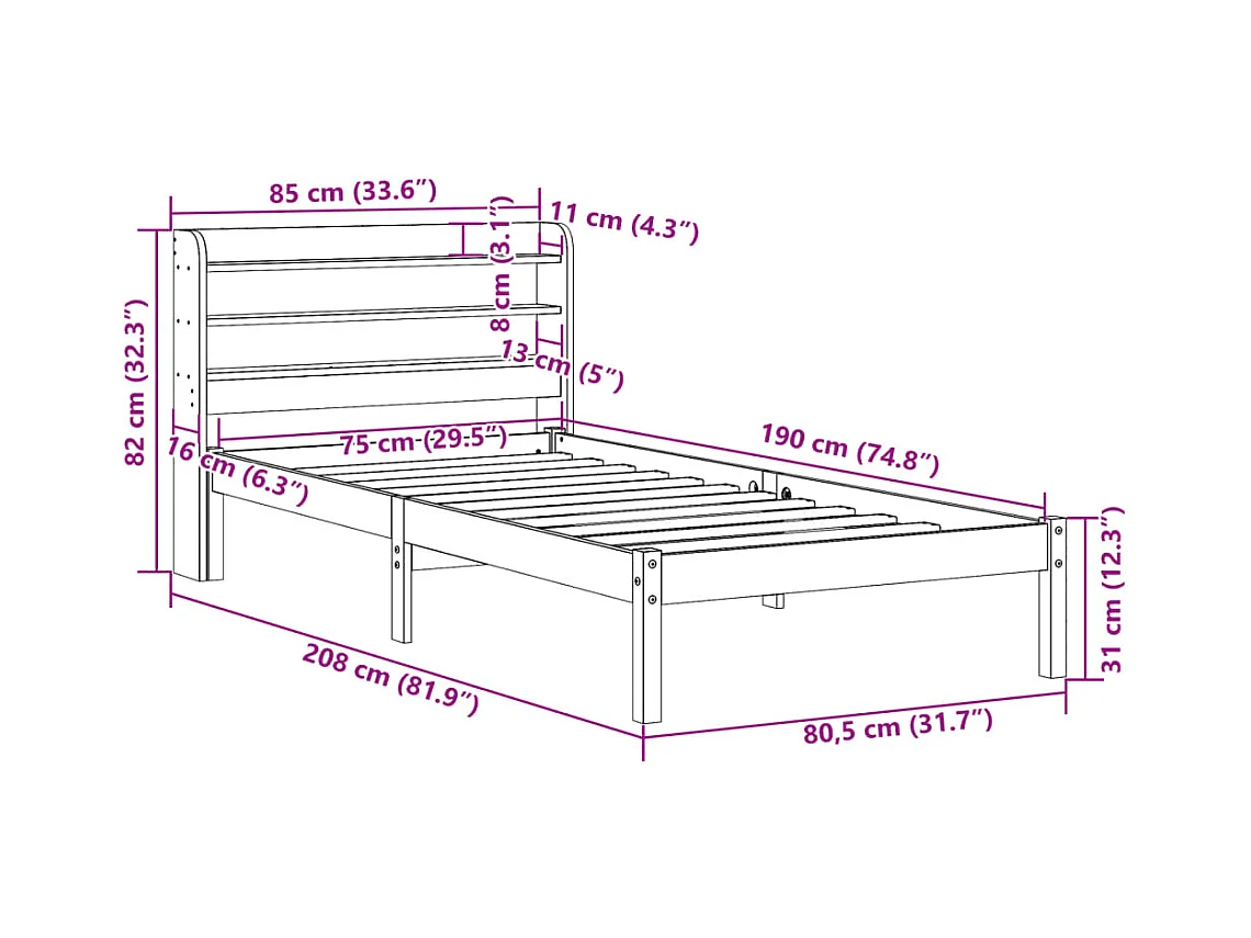 Cadre de lit sans matelas avec tiroirs 75x190 cm bois de pin