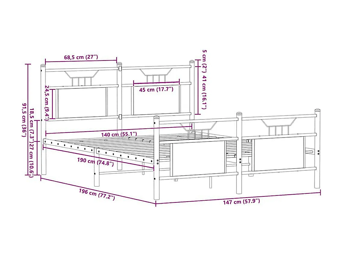 Cadre de lit sans matelas chêne fumé 140x190 cm bois ingénierie