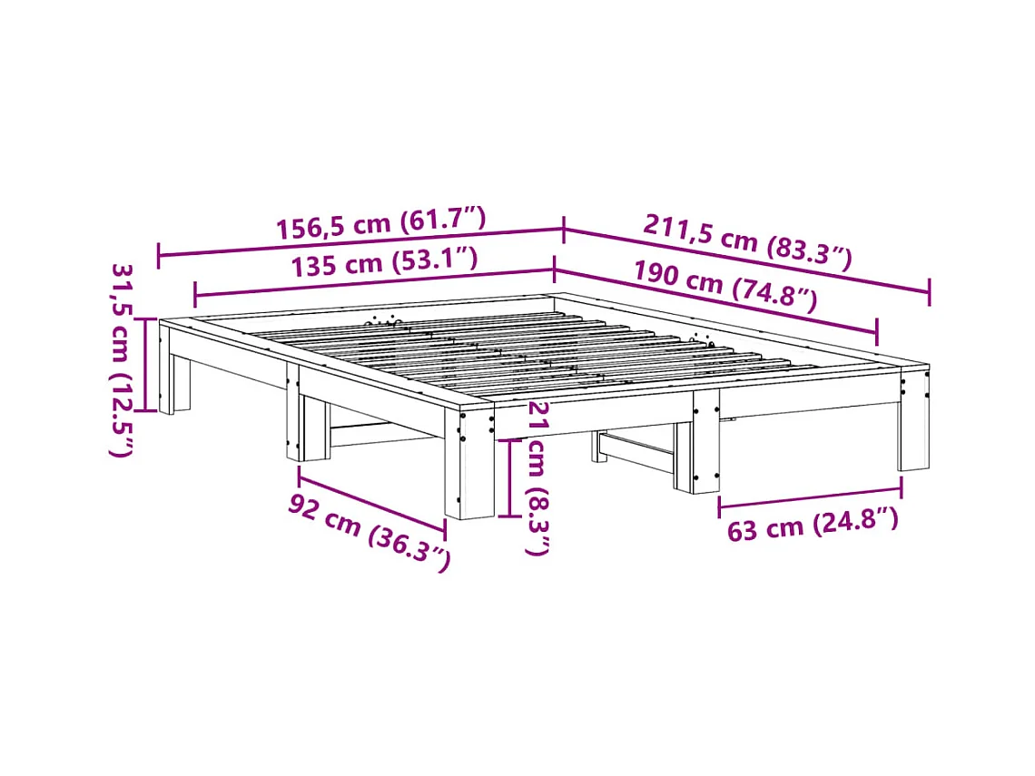 Cadre de lit sans matelas cire marron 135x190cm bois pin massif