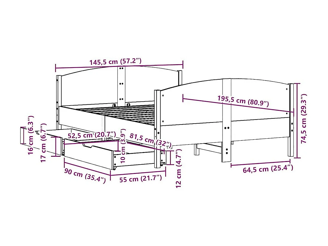 Cadre de lit sans matelas cire marron 140x190cm bois pin massif