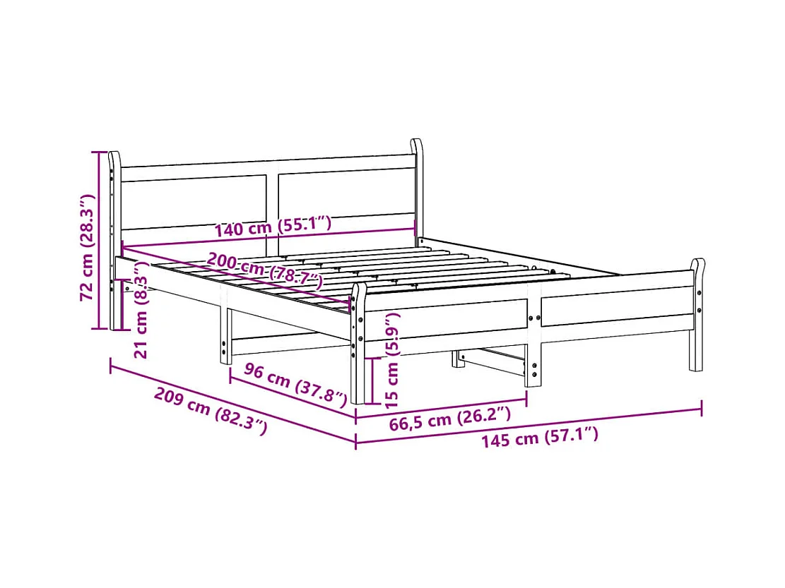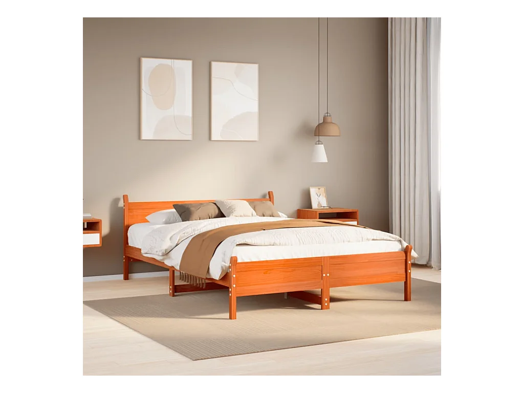 Cadre de lit sans matelas cire marron 140x200cm bois pin massif