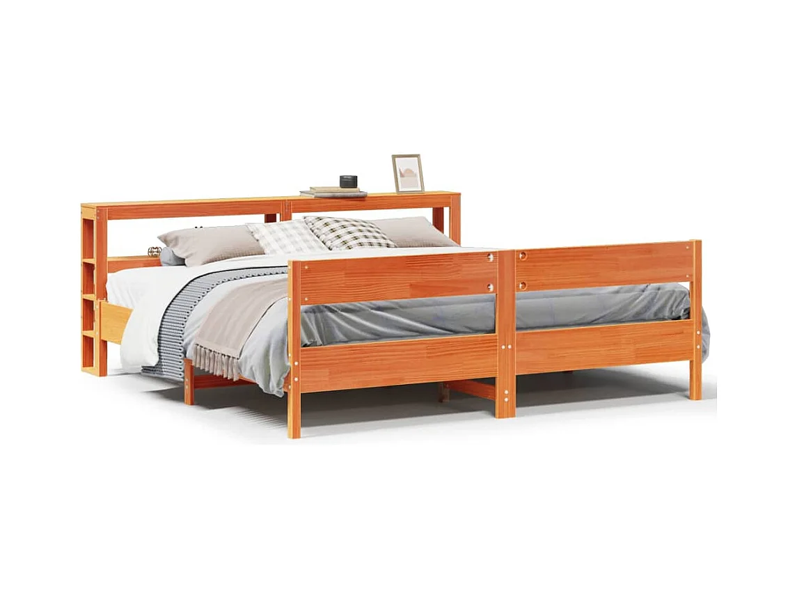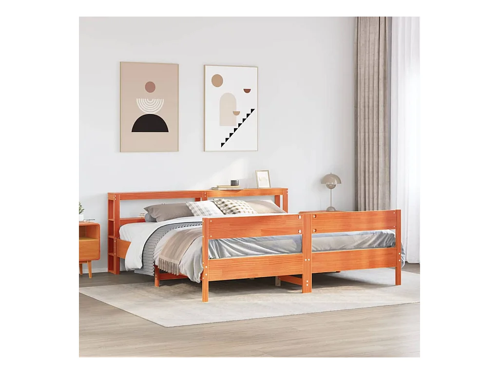 Cadre de lit sans matelas cire marron 200x200cm bois pin massif