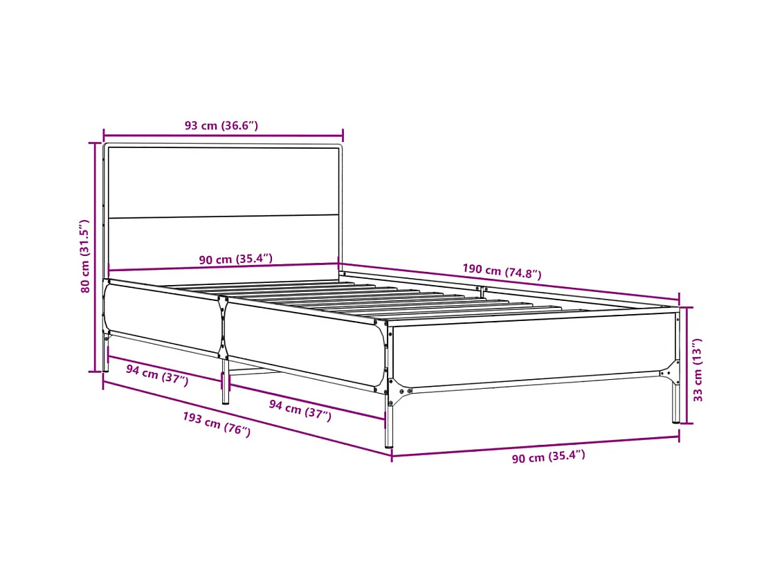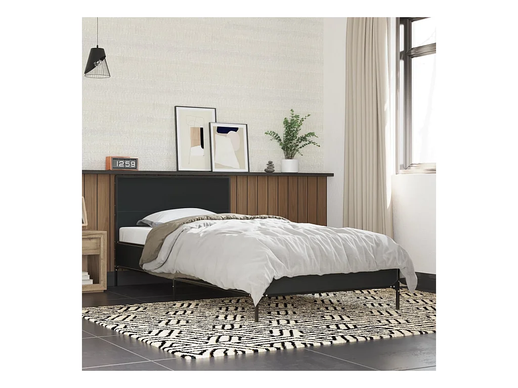 Cadre de lit noir 90x190 bois d'ingénierie et métal