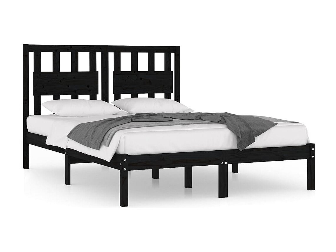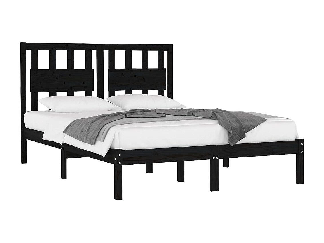 Cadre de lit sans matelas noir bois massif 140x190 cm