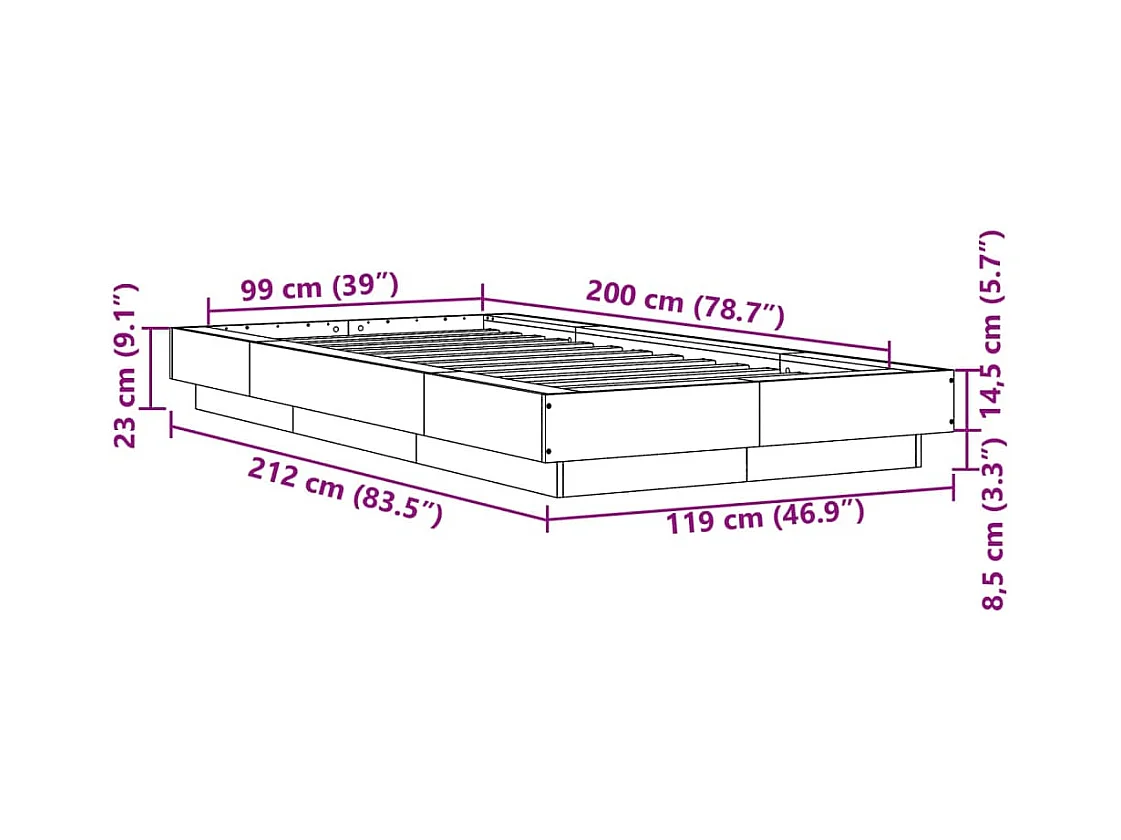 Cadre de lit sonoma gris 100x200 bois d'ingénierie