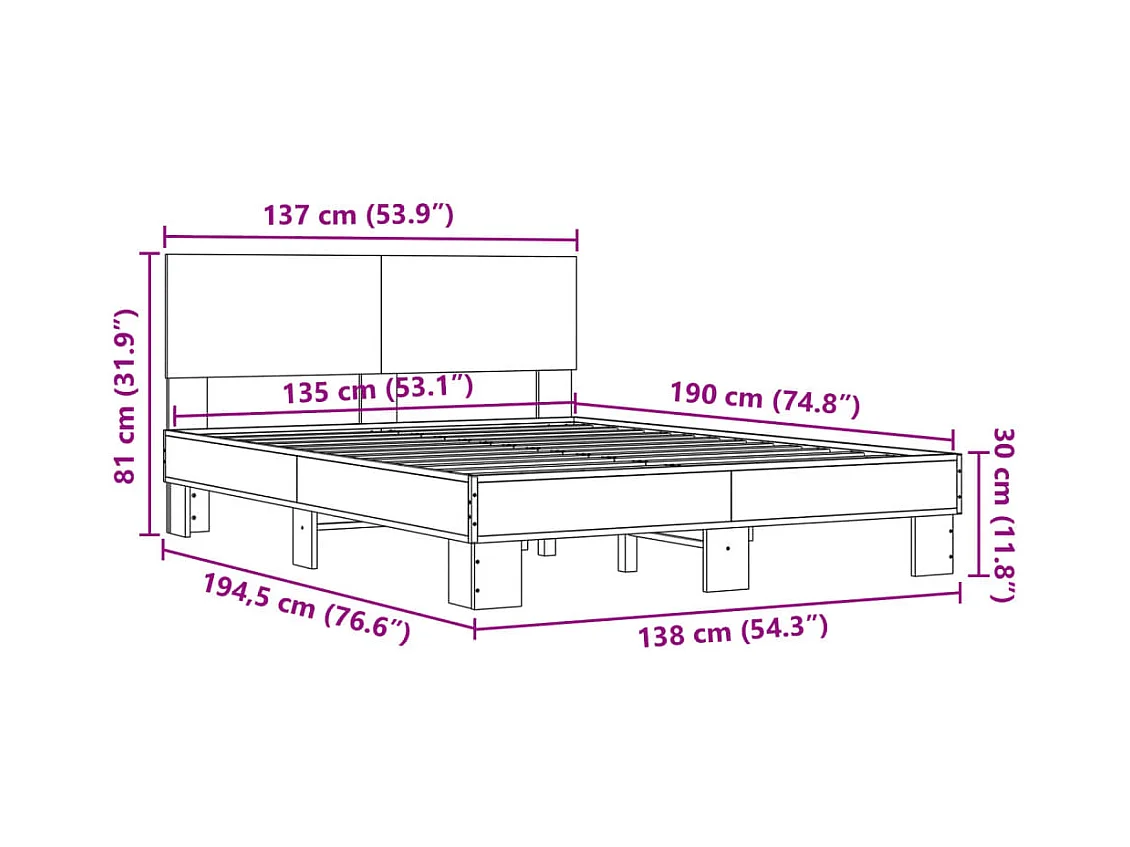 Cadre de lit sonoma gris 135x190 bois d'ingénierie et métal