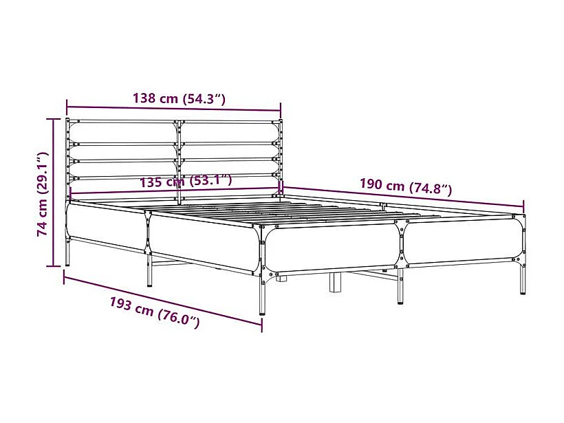 Cadre de lit sonoma gris 135x190 bois d'ingénierie et métal