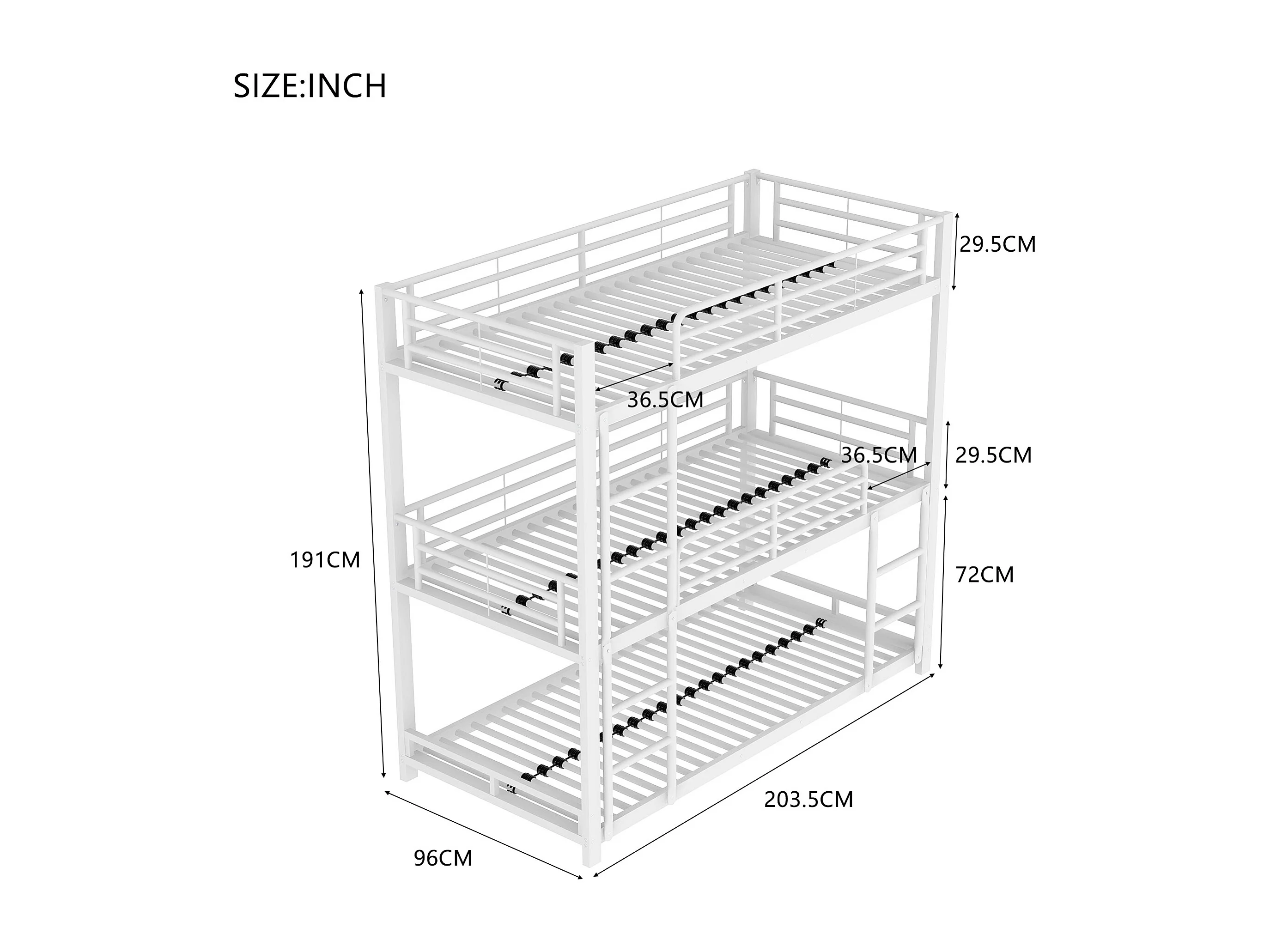 Cadre De Lit Superposé, Lit Métallique, Lit Étagé 90x200cm, Lit Triple Étagé Pour Enfants, Blanc