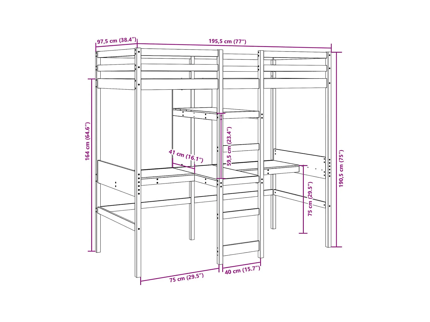 Cadre de lit superposé sans matelas 90x190cm bois de pin massif