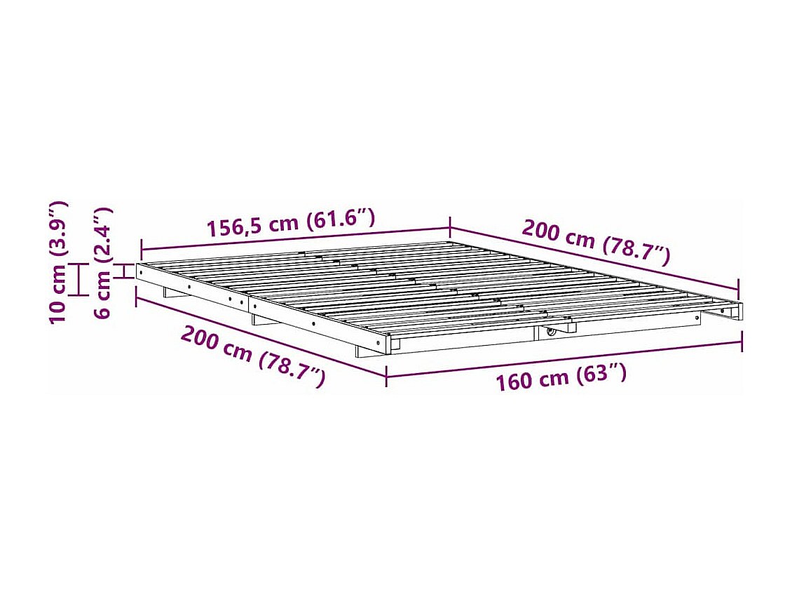 Cadre de lit surélevé Marron 160 x 200 cm Bois massif en pin