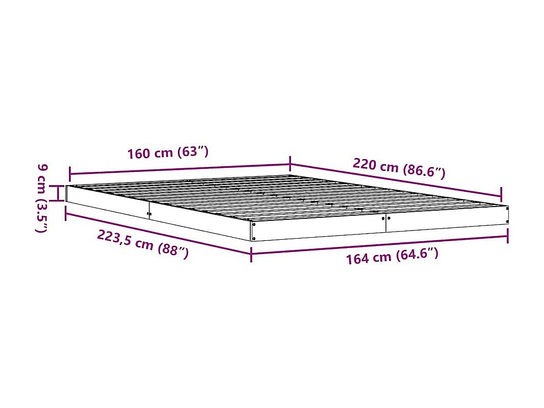 Cadre de lit surélevé Naturel 160 x 220 cm Bois de pin massif