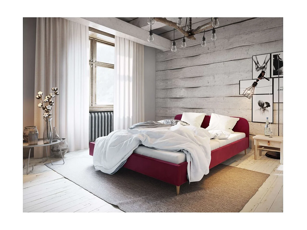 Cadre de lit TALI avec tête de lit et sommier à lattes en velours - Bordeaux - Dimensions du couchage : 160 x 200 cm