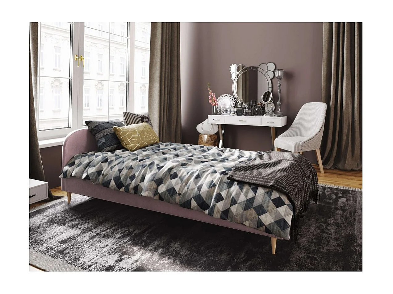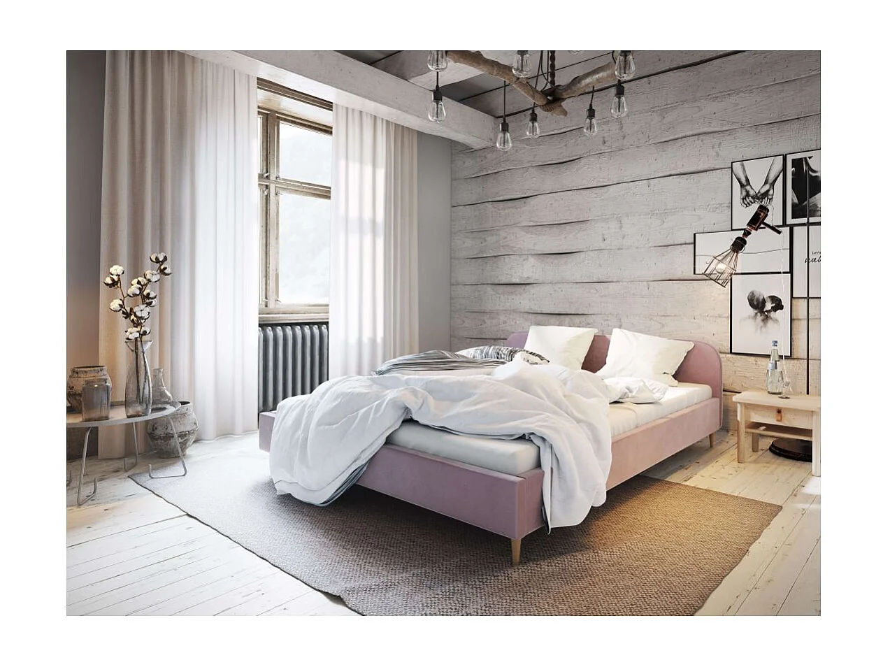 Cadre de lit TALI avec tête de lit et sommier à lattes en velours - Rose - Dimensions du couchage : 140 x 200 cm