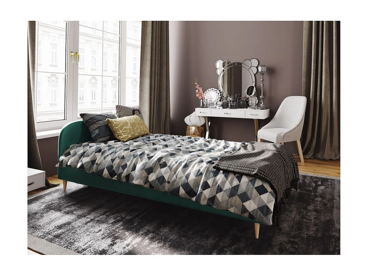 Cadre de lit TALI avec tête de lit et sommier à lattes en velours - Vert - Dimensions du couchage : 140 x 200 cm