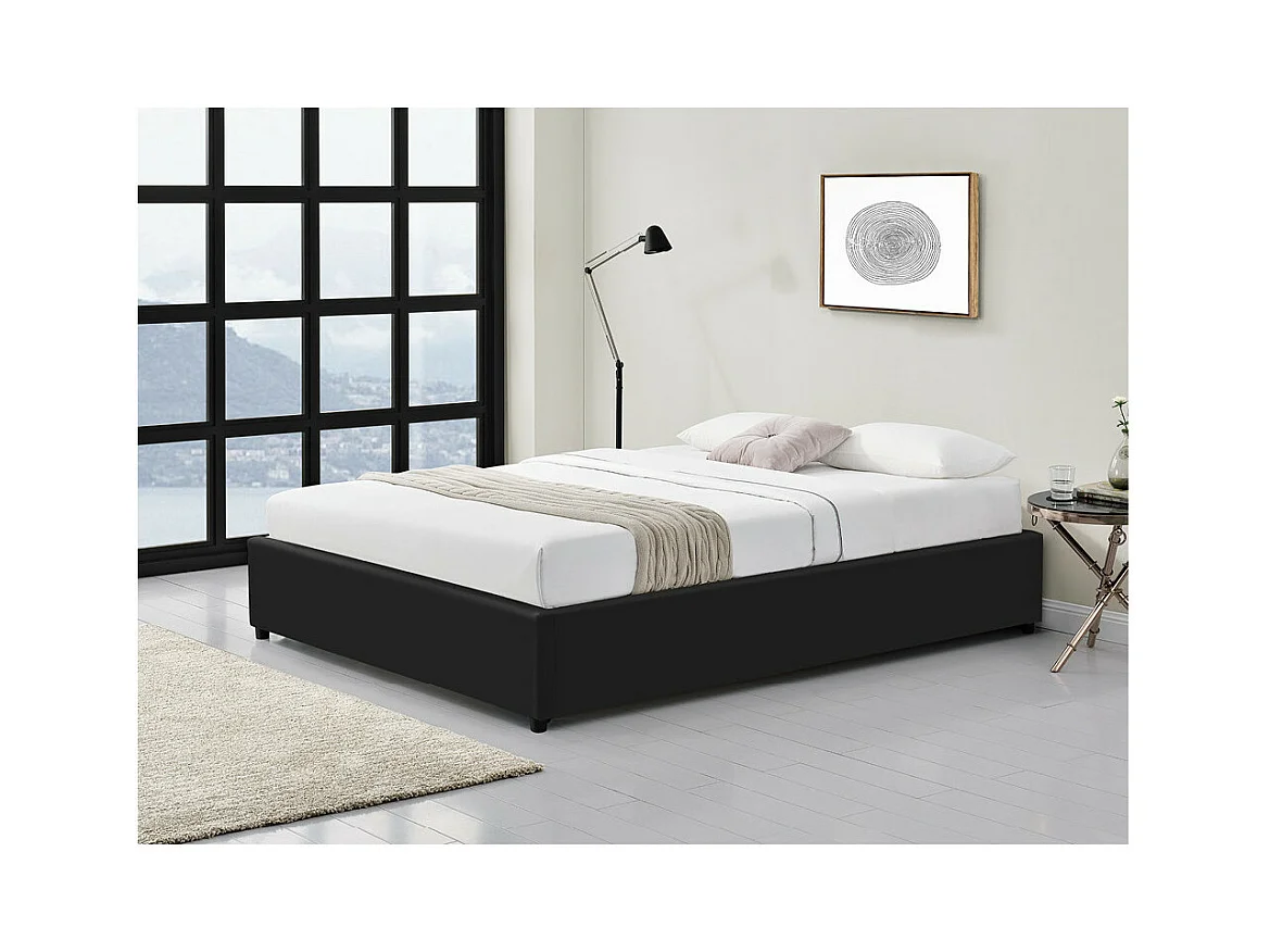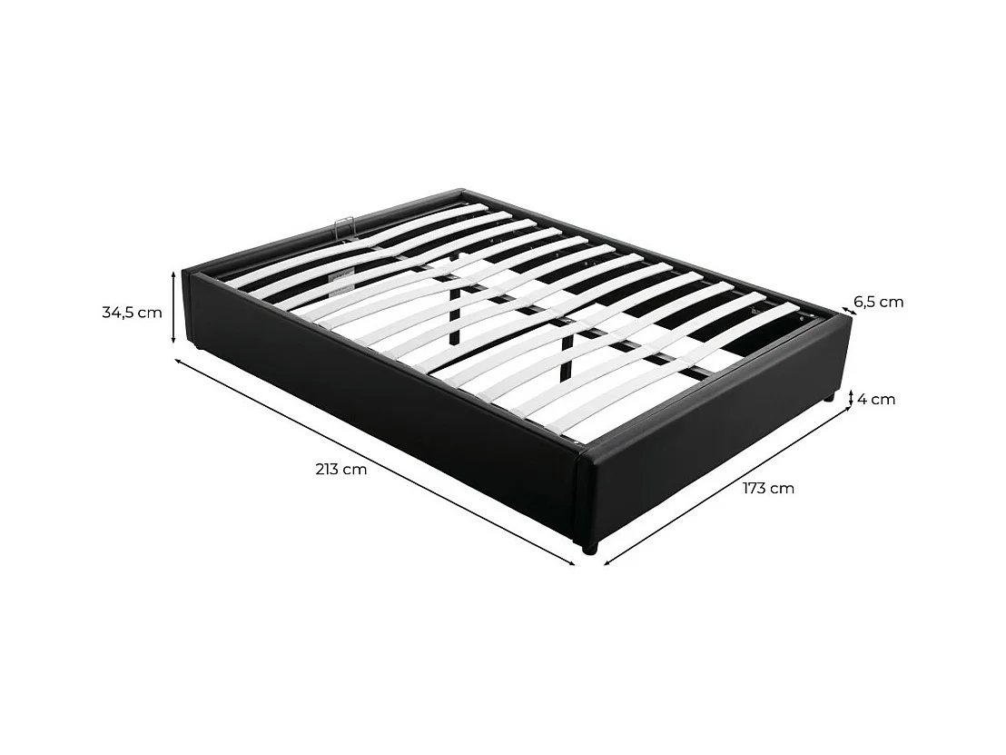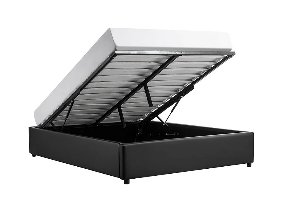 Cadre de lit TEO avec sommier relevable à lattes en simili - Noir, Largeur - 160 cm