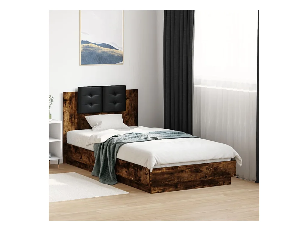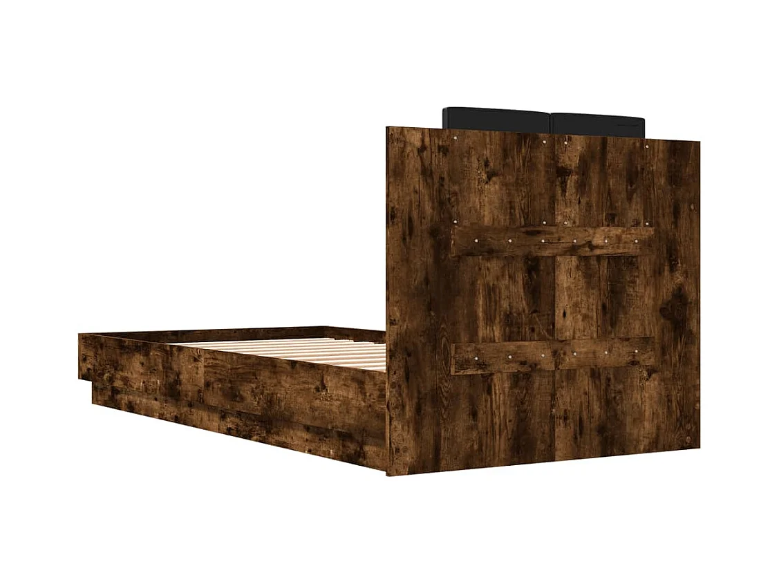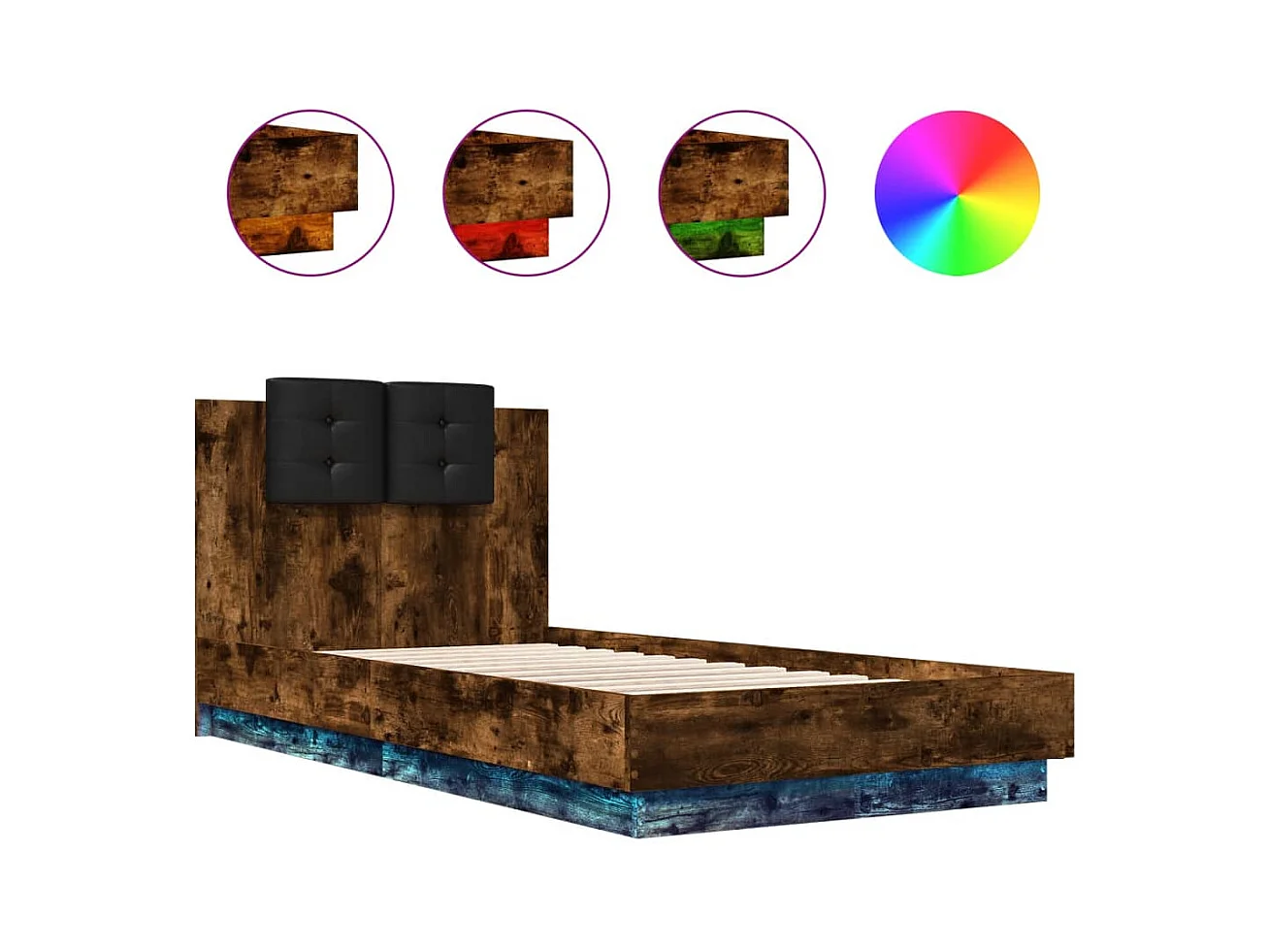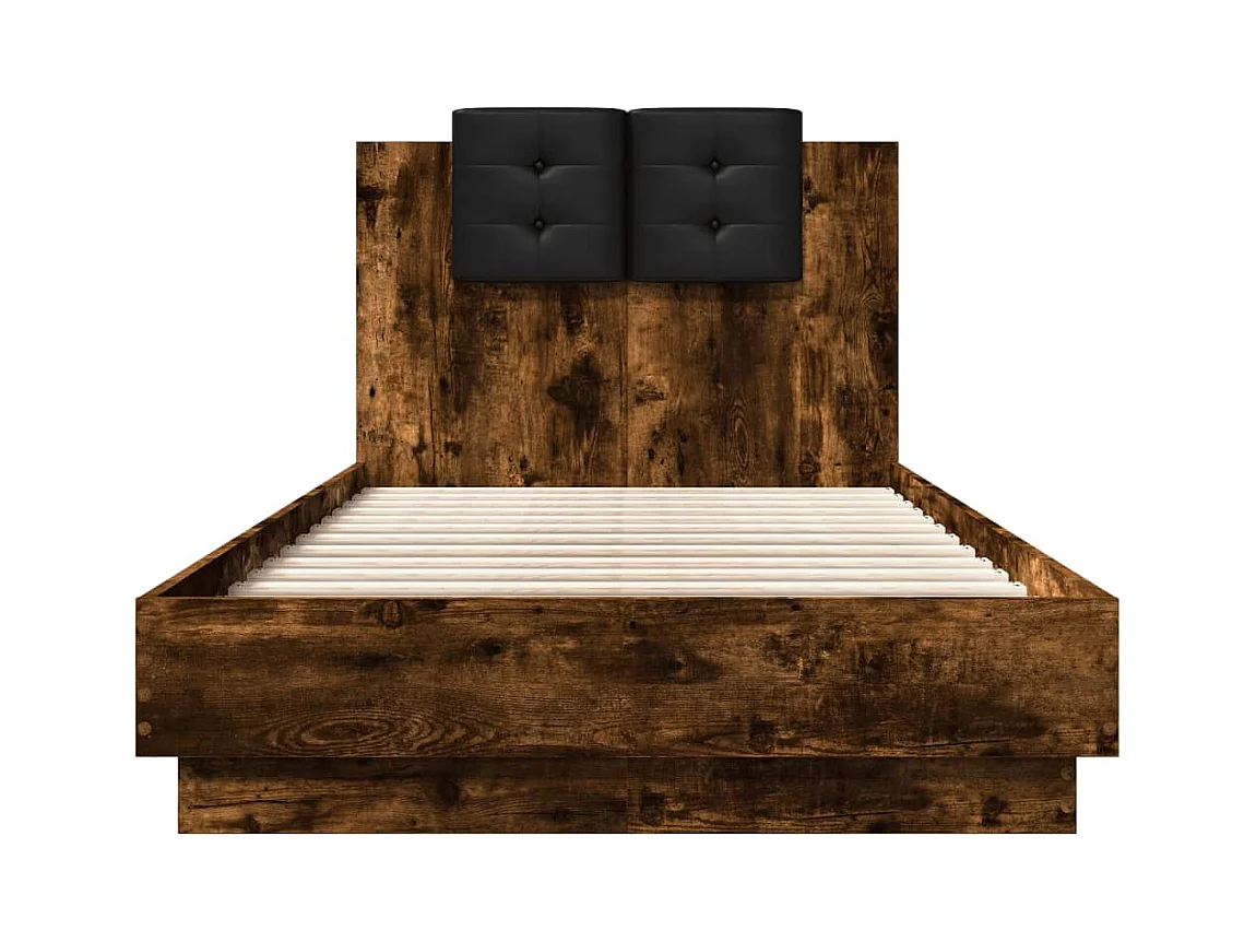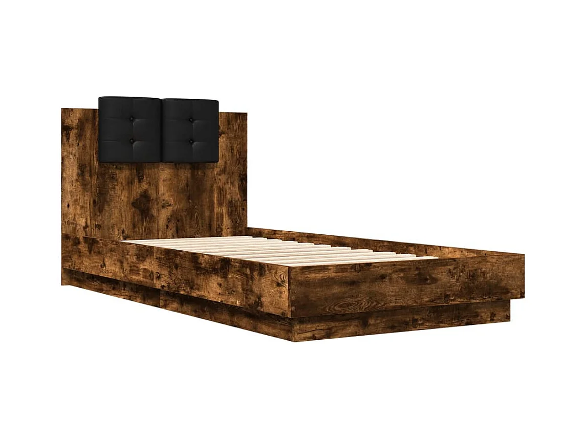 Cadre de lit tête de lit et lumières LED chêne fumé 75x190