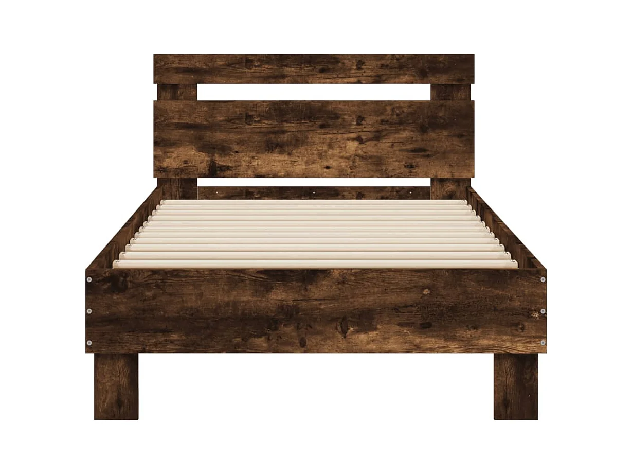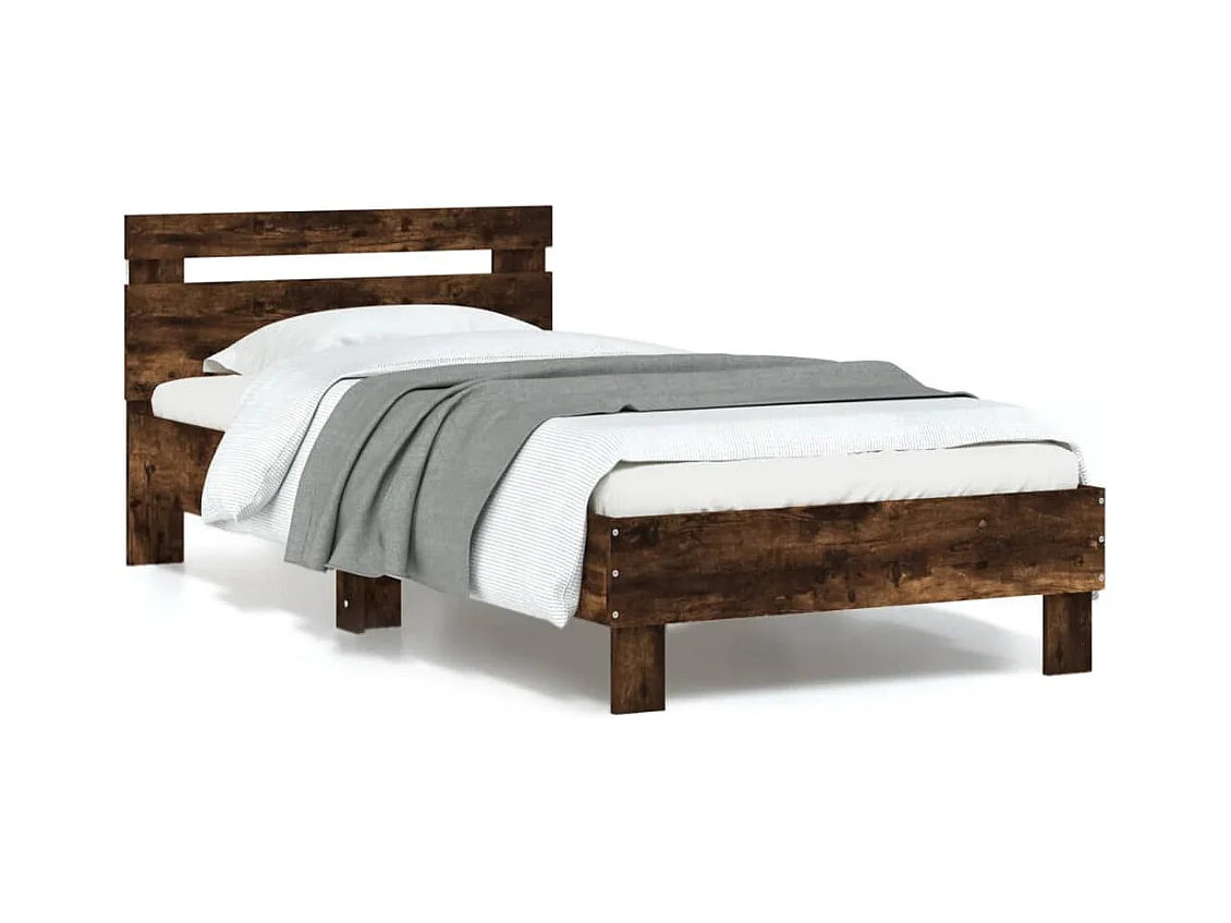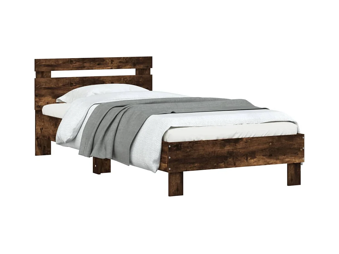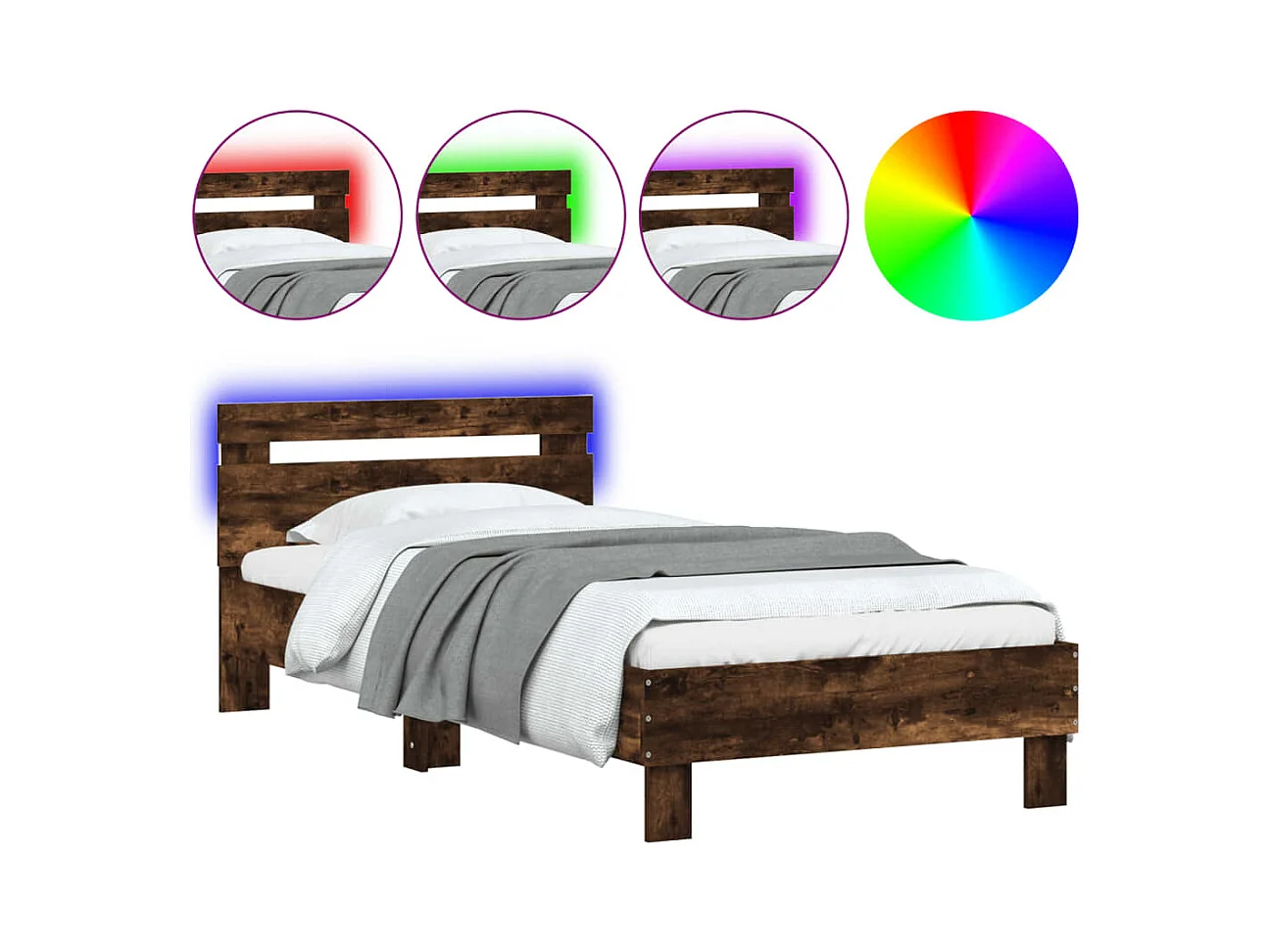 Cadre de lit tête de lit et lumières LED chêne fumé 90x190