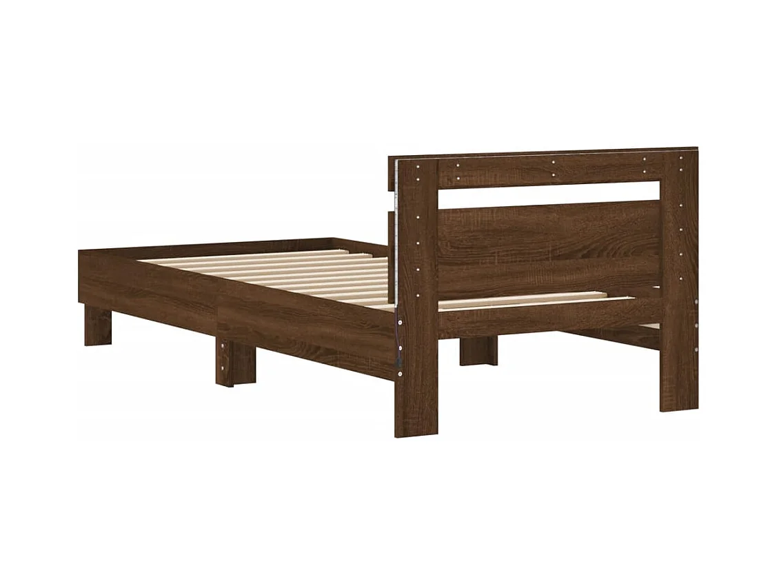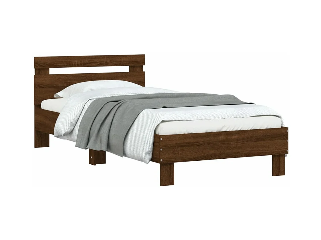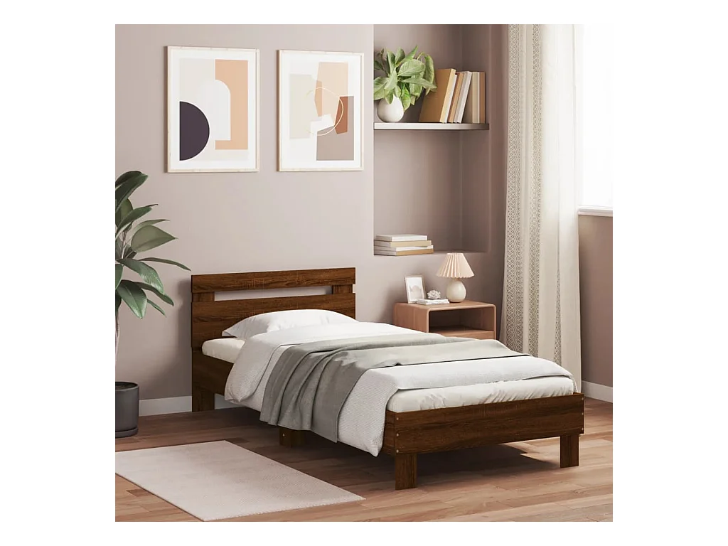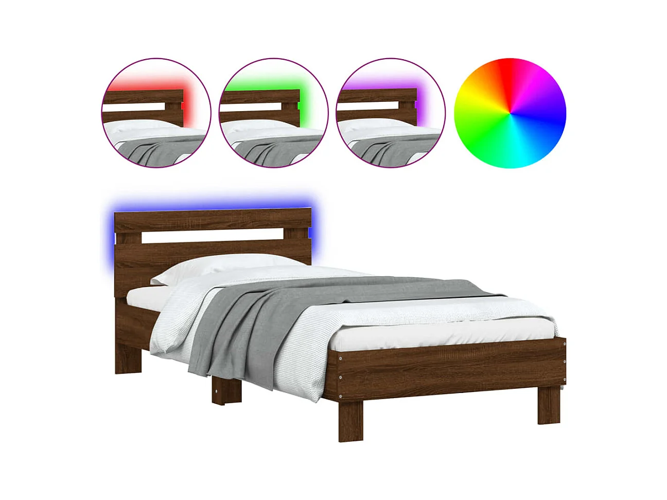 Cadre de lit tête de lit et lumières LED chêne marron 90x190