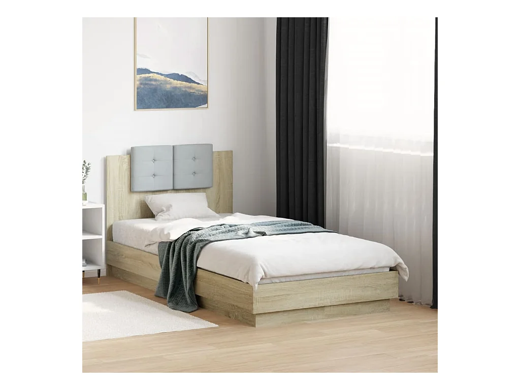 Cadre de lit tête de lit et lumières LED chêne sonoma 75x190