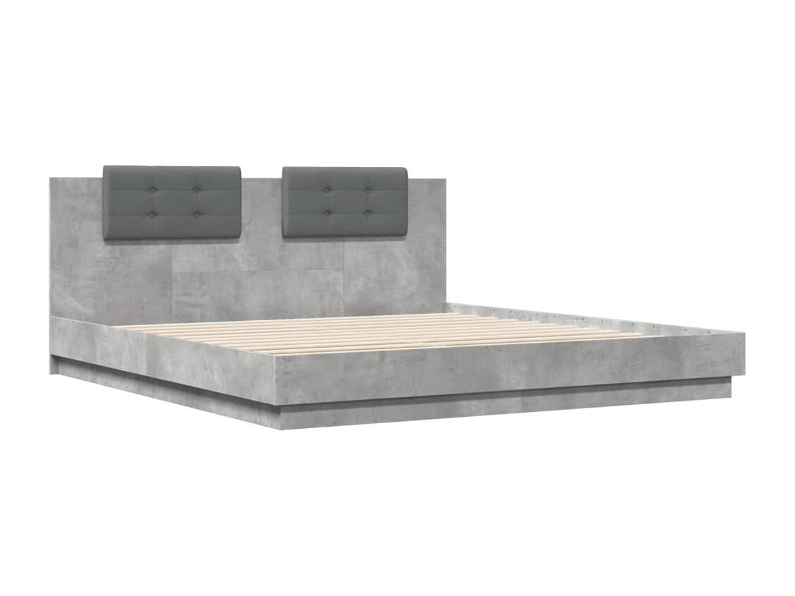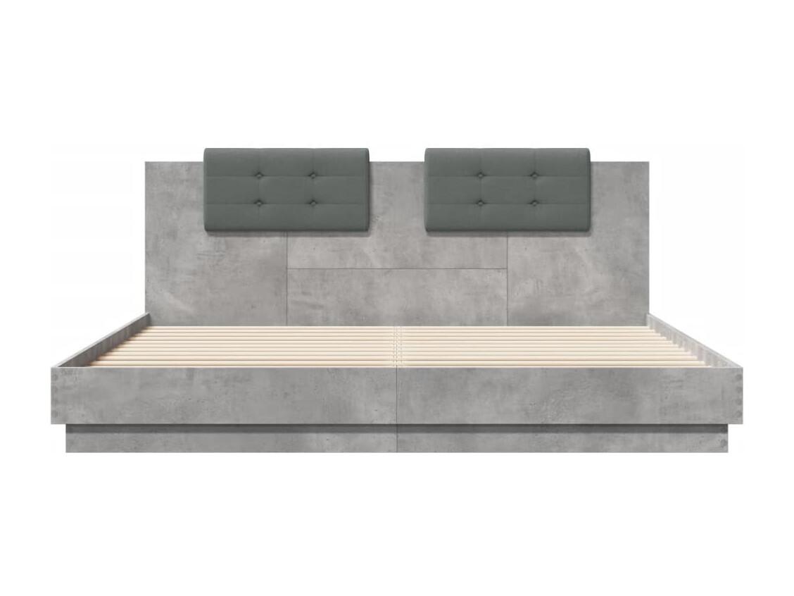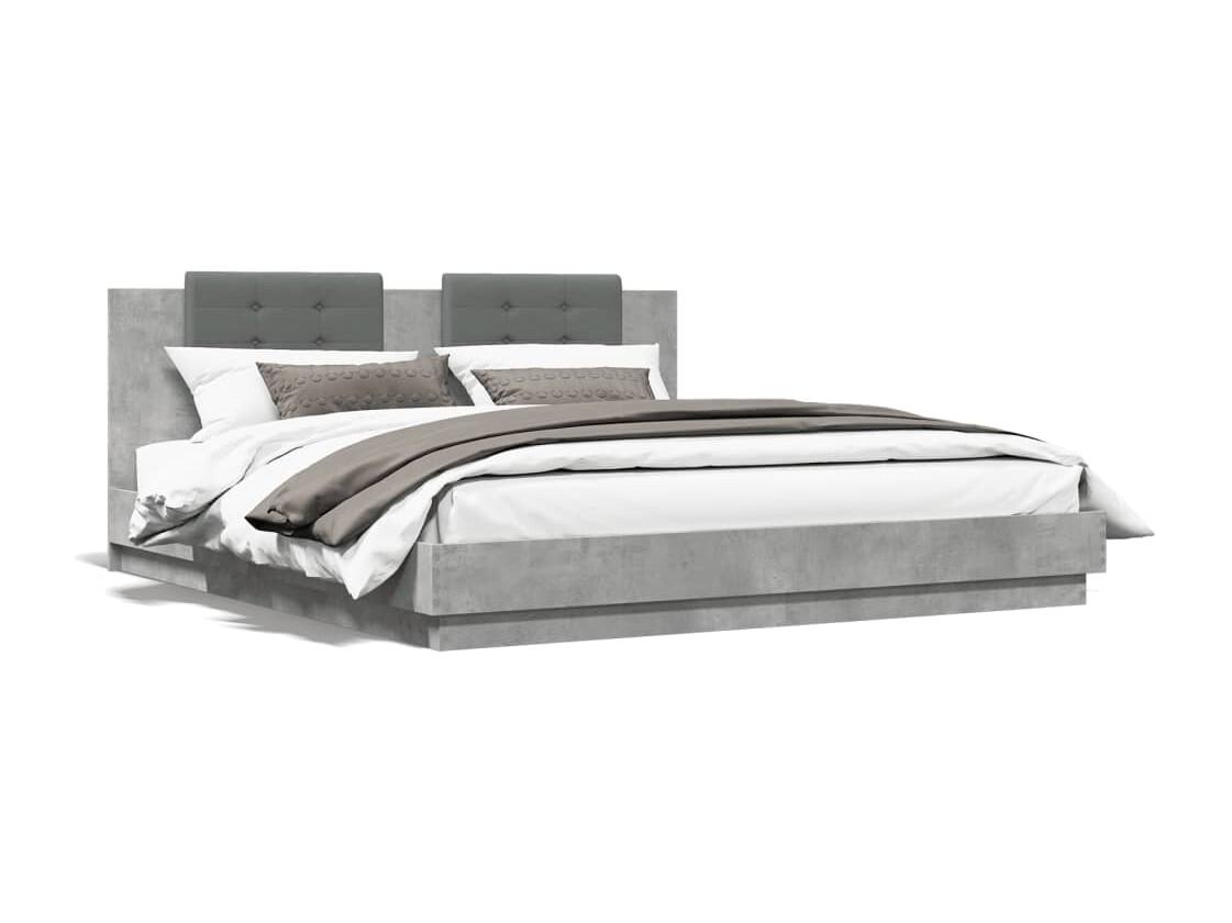 Cadre de lit tête de lit et lumières LED gris béton 180x200